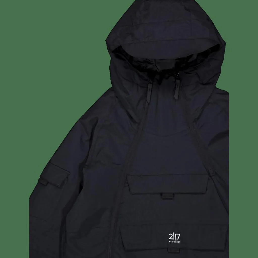- Elastiska muddar i ärmslut och dragsko i nederkant