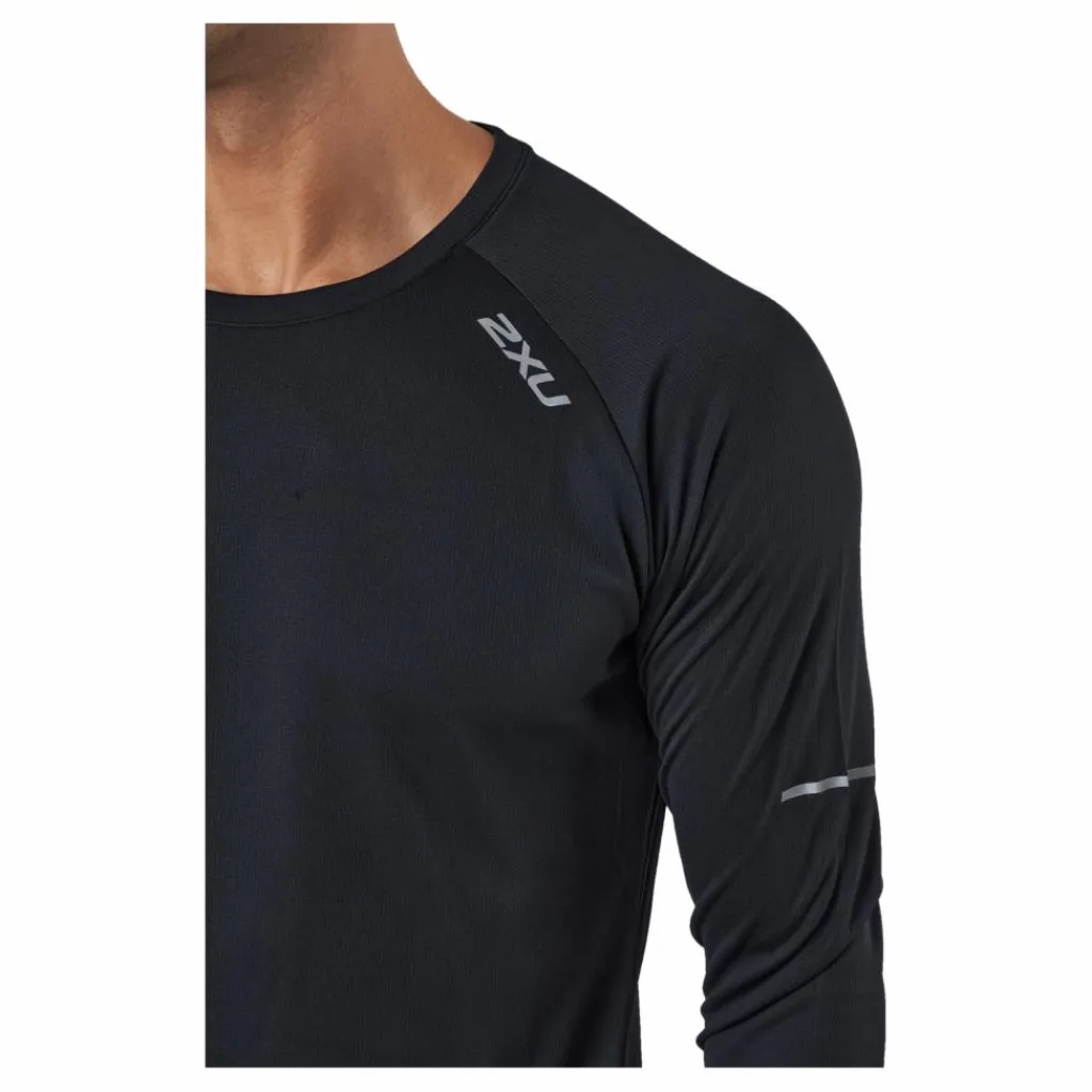 HÅLL dig svalt OCH PÅ SPÅR UNDER VARJE LÖPNINGMed X-VENT-tygteknologi kombinerar Aero Long Sleeve en återvunnen dubbelstickad svetttransporterande kropp och lätt andningsbar meshrygg för att hålla dig torr och sval så att du kan prestera bekvämt.