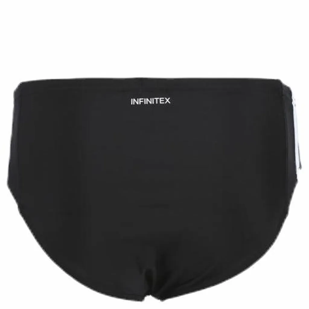 Baddräkt till barn, med dom klassiska tre striporna. Klorresistent återvunnet material. Teknologi: INFINITEX® FITNESS ECO Material: 78% återvunnen polyester, 22% Elastan
