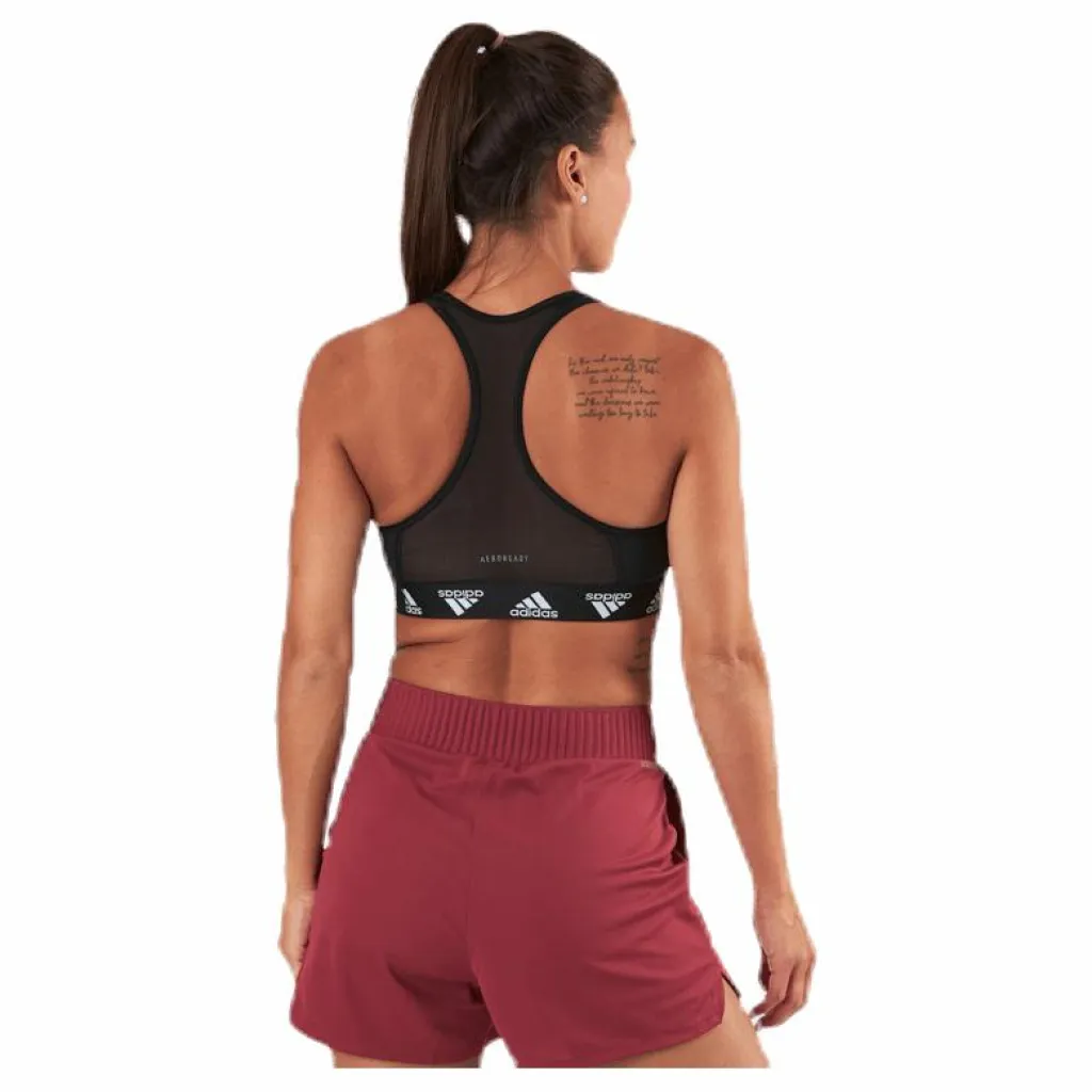 Gymmets motsvarighet till den lilla svarta. Sport-bh:n med brottarrygg är ett av de populäraste plaggen bland gymmare. Den här modellen erbjuder medelstort stöd och uttagbar vaddering. Ett mönstrat band under ger den en lika trendig som klassisk look. Tunn mesh baktill svalkar skönt under dina avslutande reps. Stabiliserande band framtill. Uttagbar vaddering. Invändigt lager i tvådelad, kraftig mesh. Rund hals. Interlock i 70 % återvunnen polyester, 19 % polyester, 11 % elastan. Följsam passform med Alphaskin. Ventilerande sport-bh. Fuktabsorberande AEROREADY.