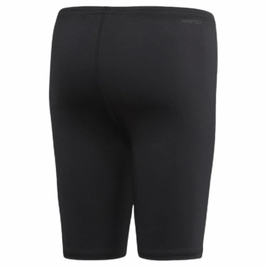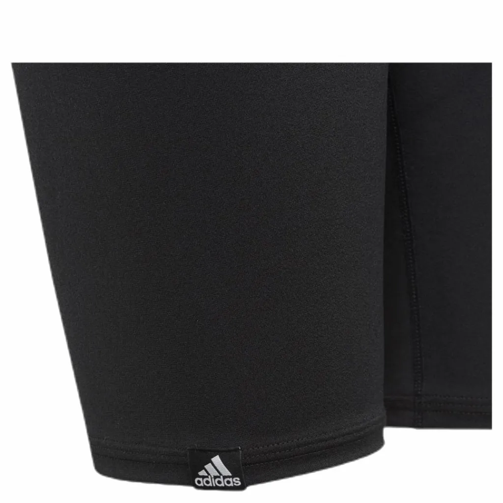 Alla ryggsimsmästare har en gång varit barn som räknade fel och slog huvudet i kanten. Dessa adidas-badbyxor med utpräglad kompressionspassform hjälper små simmare att känna sig säkra när de fokuserar på start och vändningar. Klorresistent Infinitex Fitness Eco. UV-faktor 50+. Dessa badbyxor är gjorda i återvunnen polyester för att spara på naturens resurser och minska utsläppen. . Trikå i 55 % återvunnen polyester / 45 % polyester. Skönt och lätt material. Badbyxor för fitnessträning. Elastisk midja med invändig dragsko.