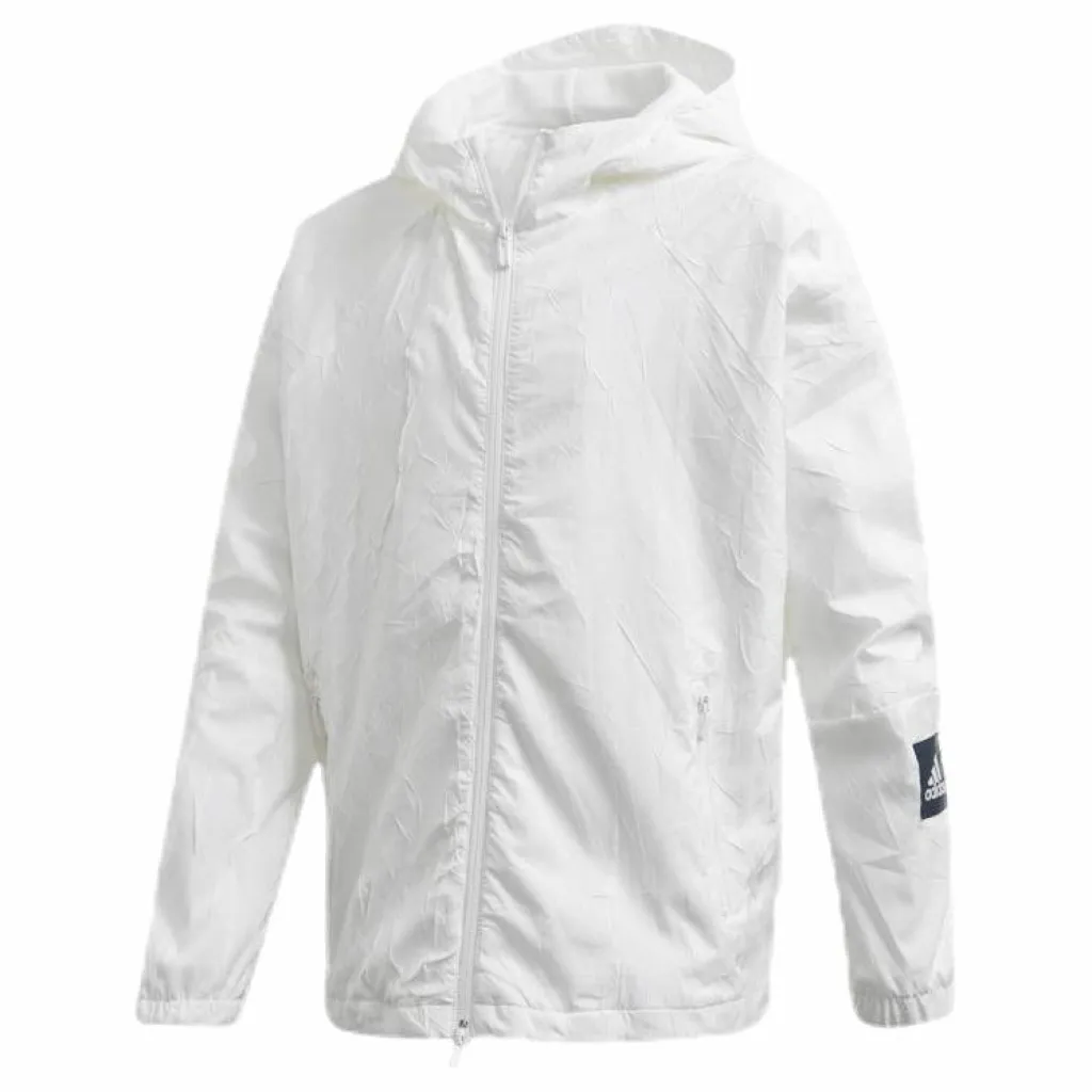 Att bry sig är coolt. Denna juniorjacka från adidas är tillverkad i vävt tyg gjort av återvunnet material. Huvjackan har ledig passform för att enkelt kunna skapa lager-på-lagereffekt, och meshtyget under armarna avleder fukt. Den är tillverkad av Parley Ocean Plastic® som kommer från återvunnet avfall insamlat från stränder och kuststäder, för att undvika att plasten sprids i havet.