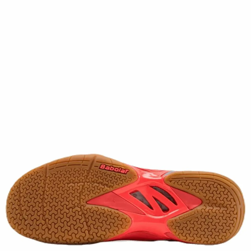 Babolat Shadow Spirit är en väldigt lätt och smidig damsko för badminton och andra inomhussporter. Precis som Babolats dyrare modell så bjuder denna sko på stadig dämpning och lätt vikt kombinerat med bra grepp. Undersulan är utvecklad och tillverkad av Babolats samarbetspartner Michelin. 3D-formade dubbar i olika storlekar ger en optimal sula, större dubbar bidrar med hållbarhet och extra bra grepp medan de mindre dubbarna ökar friktionen. Resultatet blir explosivare startrörelser och snabbare stopp. Vibrakill dämpningssystem är genomgående från hälen till framfoten för en stor komfort och minskade stötar. Ovansidan är tillverkad i ett starkt mesh-material som andas och ventilerar skon för att leda bort svett från foten.