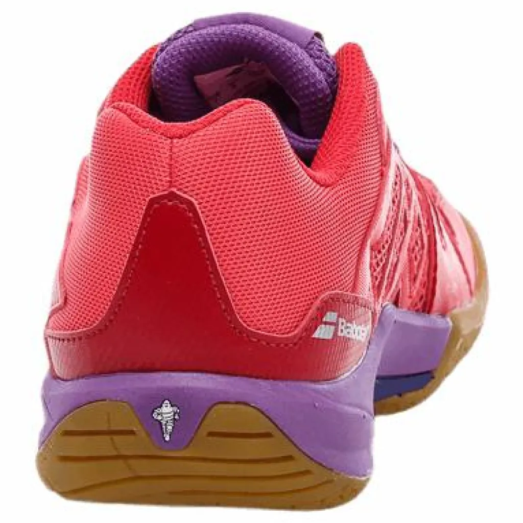 Dam-sko från Babolat som är en storsäljare bland motionärer som söker en indoor-sko som passar till många olika sporter.Precis som alla skomodeller från Babolat så är undersulan tillverkad av däckspecialisten Michelin för ett perfekt grepp och bra hållbarhet. Ordentligt dämpad i hälen för att minimera stötar och ökad komfort i skon. Ovansidan är tillverkad med slitstarkt mesh-material med god andningsförmåga som leder bort svett från foten. Skon har en väldigt lätt vikt och är därmed mycket smidig och för att snabba upp fotarbetet. Hälkappan är förstärkt och något högre än standard för att garantera bra support och stabilitet.