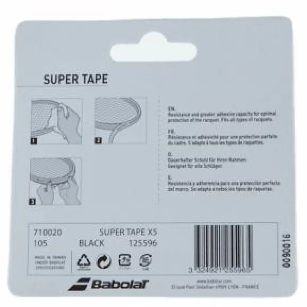 Skyddar racketets ram från tidigt slitage. Slitstark med långvarigt lim för optimalt ramskydd. Passar alla typer av ramar. Varje paket innehåller fem 19,5-tums förskurna remsor, 1,25 tum breda.