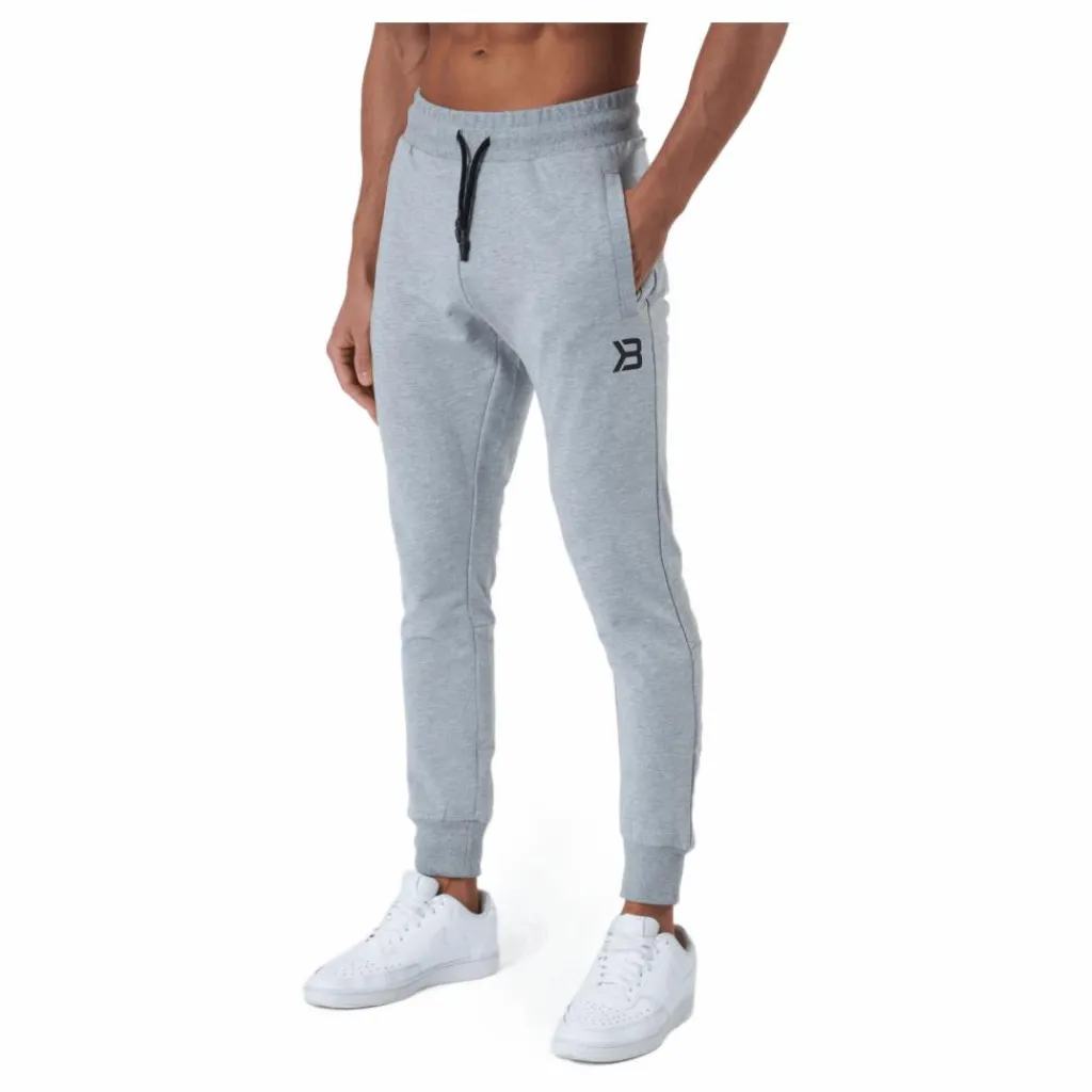 Träningsbyxor med ett högkvalitativt mjukt tyg, som även ger tillräcklig stretch. De avsmalnande joggingbyxorna har ett bekvämt midjeband fram och resår bak. Det finns två sidfickor och en elastisk dragsko i midjan.