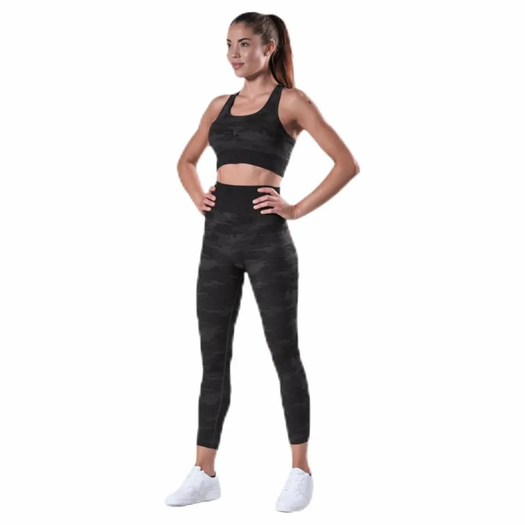 BLACC Fitness collection. Sport BH medium support i seamless kvalitet med Camo mönster. Axelbanden går ihop på ryggen ihop till en racerback. Uttagbara kupor och bred elastik under bysten för extra stöd. Material 68% Polyamid, 25% Polyester, 7% Spandex. Skötselråd: Kom ihåg att ta hand om dina kläder för att förlänga hållbarheten. Tvätta bara om du måste och följ anvisningarna på tvättrådslappen.