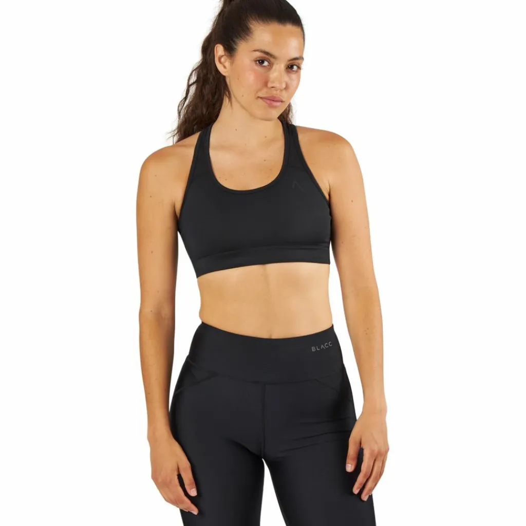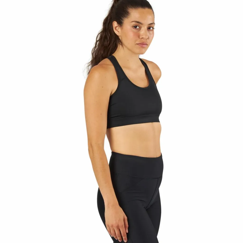 Snygg, bekväm och bekväm sport-bh sydd i dubbla lager för att ge bra stöd och stöd för all typ av träning. Passar allt från det svettiga gympasset, yogaövningar till det tunga löppasset. Modellen har en kompressiv passform och racerbackdesign för ett naturligt rörelsemönster.