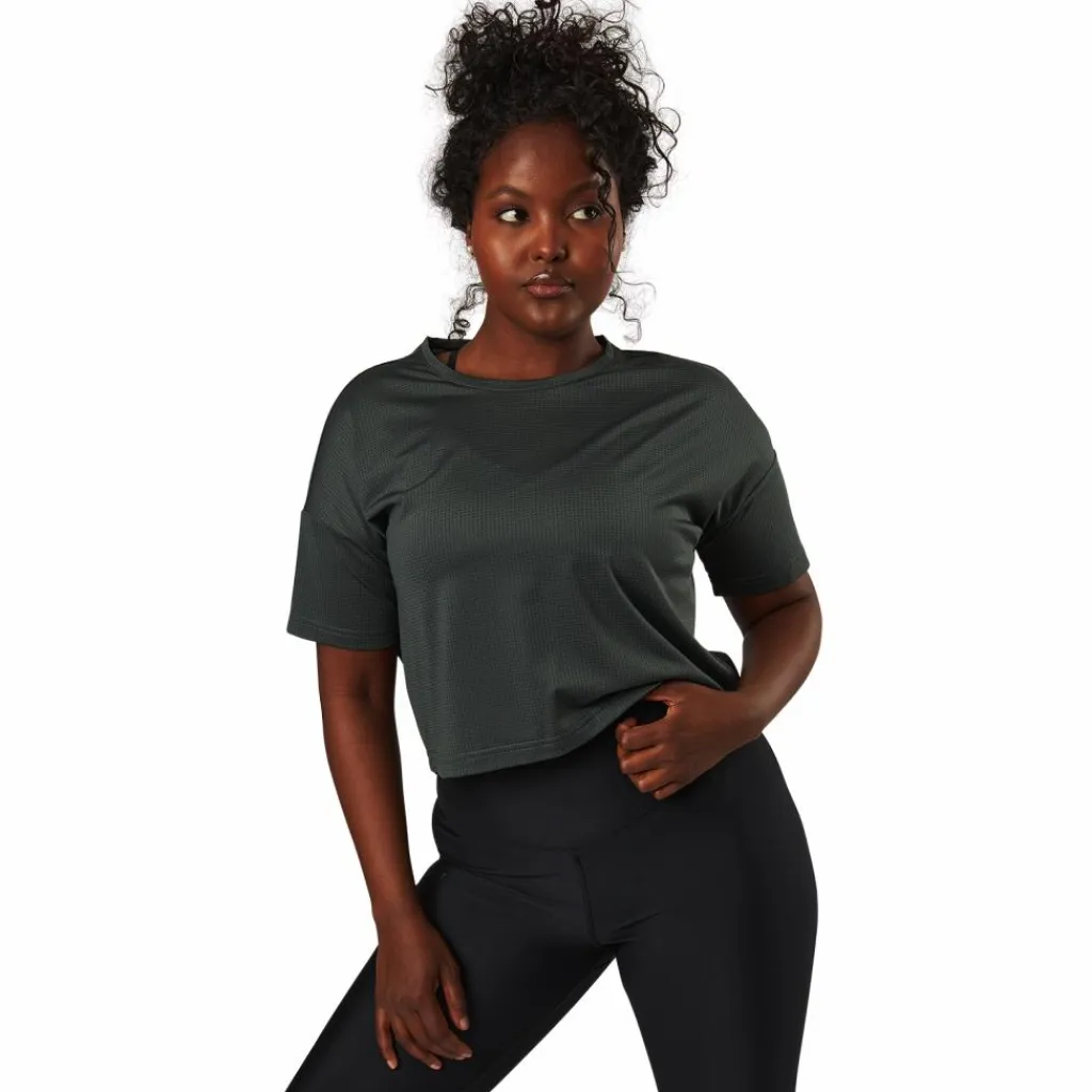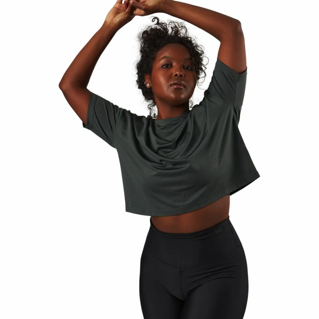 En tränings T-shirt i croppad modell helt i mesh för en luftig och lätt style. Axeln är doppad och halsringningen rund för en sportig look. Material: 95% Polyester och 5% elastan Skötselråd: Kom ihåg att ta hand om dina kläder för att förlänga hållbarheten. Tvätta bara om du måste och följ anvisningarna på tvättrådslappen.