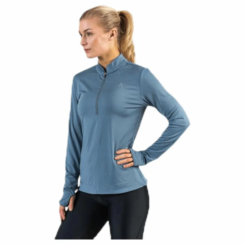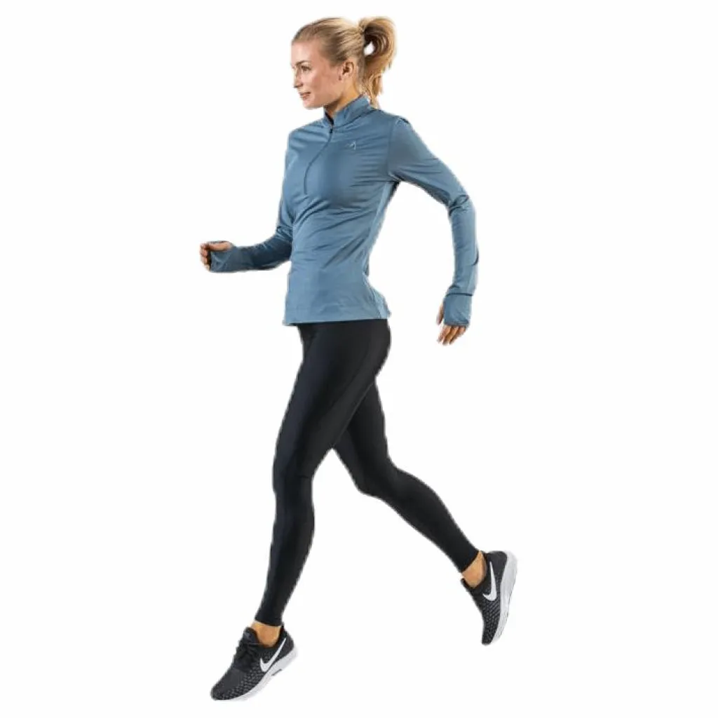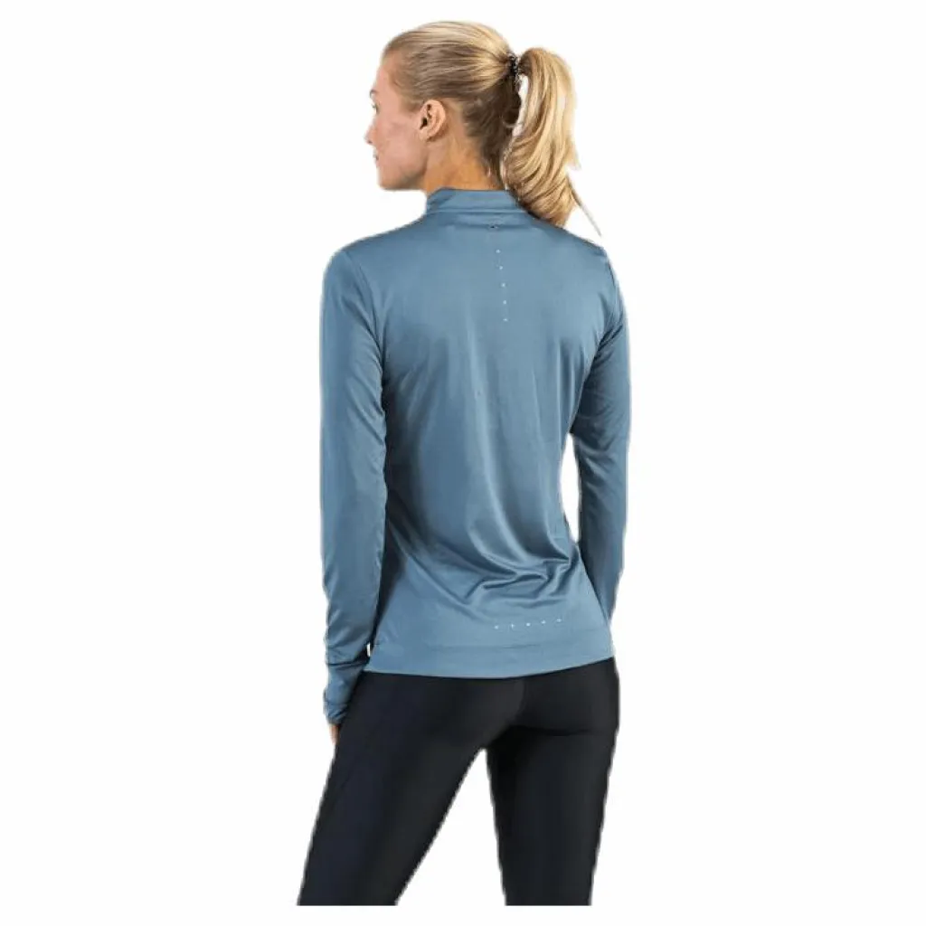 Långärmad tröja mjukt och skönt funktionsmaterial med fin siluett. Dragkedja för värmereglering och tumhål i ärmsluten. Bomber krage och ett litet hål i nacken för mediasladd. Reflexdetaljer vid zipper och i loggan framtill och fina diskreta reflexprickar på ryggen så du syns under hela löprundan. Material: 92% polyester, 8% elastan.