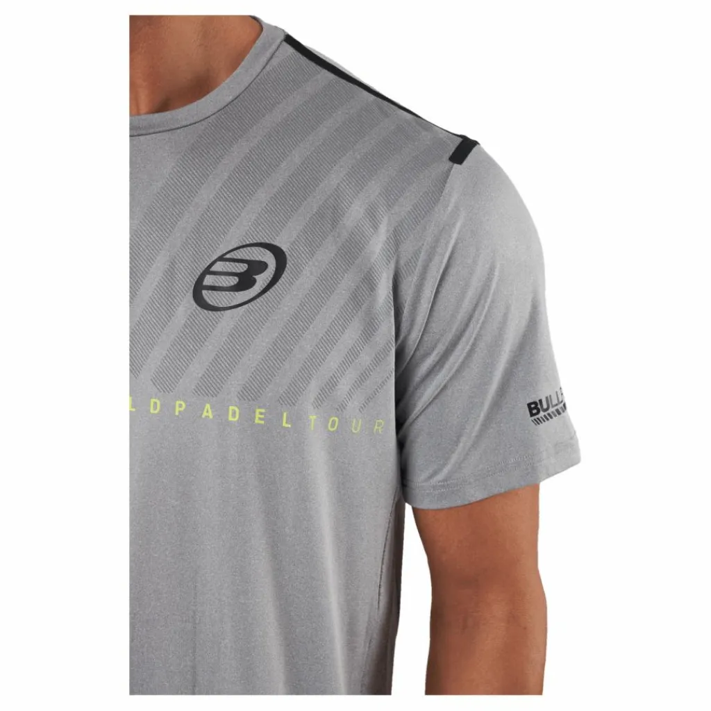Den här t-shirten har en elegant och modern design och kommer säkerligen att vända huvudet. Den svala grå färgen är både snygg och diskret, vilket gör den lätt att para ihop med vilken outfit som helst. Bullpadel-logotypen visas tydligt på framsidan, vilket ger en känsla av sportig stil till det övergripande utseendet.