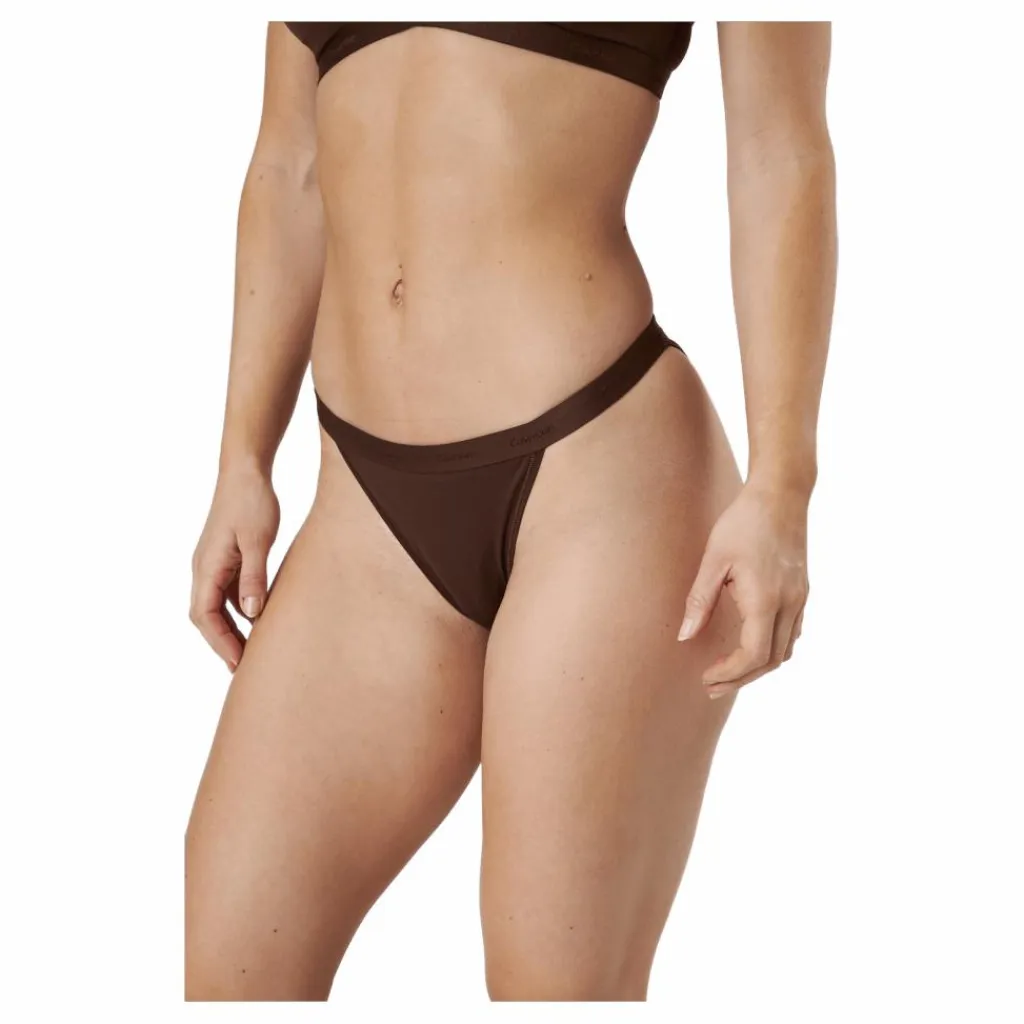Calvin Kleins senaste damlinje är Tanga, en polyamid- och elastantanga med klassiskt snitt. Den är designad för att bäras som badkläder och kombineras med någon av våra Calvin Klein bikinitoppar. Den bruna färgen är perfekt för säsongen med ett standardsnitt.