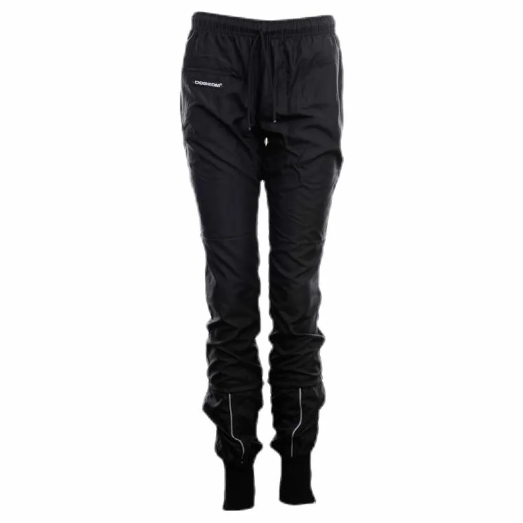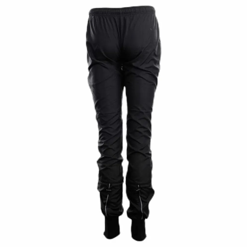 Vindtät byxa med dragsko under knäet för bättre löpkänsla, långa muddar och reflexdetaljer, tillverkad i ett lätt och smidigt material. Juniormodell.