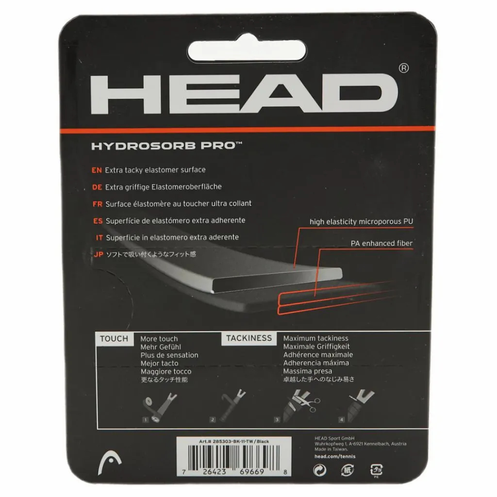 HYDROSORB PRO är det mest förstklassiga ersättningsgreppet från HYDROSORB-familjen, HYDROSORB PRO är tunnare för perfekt känsla av racketen och mer perforerad för högre svettabsorption. Den har även tvåkanalssystemets två material som säkerställer dämpning och luftflöde, medan en elastomeryta med hög klibbighet ger perfekt grepp. Finns i svart eller vitt, detta ersättningsgrepp är mycket populärt bland Tour-spelare och perfekt för dem som vill ha en fantastisk känsla och ett klibbigt, bekvämt grepp.