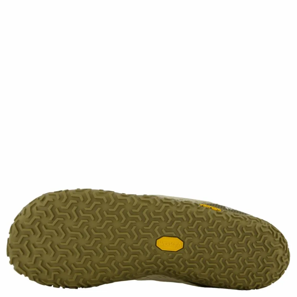 Ovandel i 100 % återvunnet mesh, 100 % återvunna snören och webbing, Merrell Barefot 2-konstruktionen är designad för att hålla foten i en naturlig position, Vibram Ecostep-yttersula med 30 % återvunnet gummi.