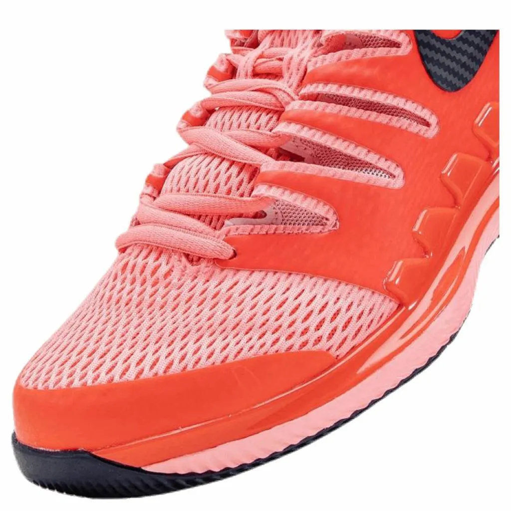 Tennisskon Nike Air Zoom Vapor X Clay för damer har ett uppdaterat Dynamic Fit-system och en fotram i full längd vilket ger dig full kontroll. Skons nya generativa yttersula kombinerad med en Zoom Air-enhet ger en lätt, responsiv känsla på banan.