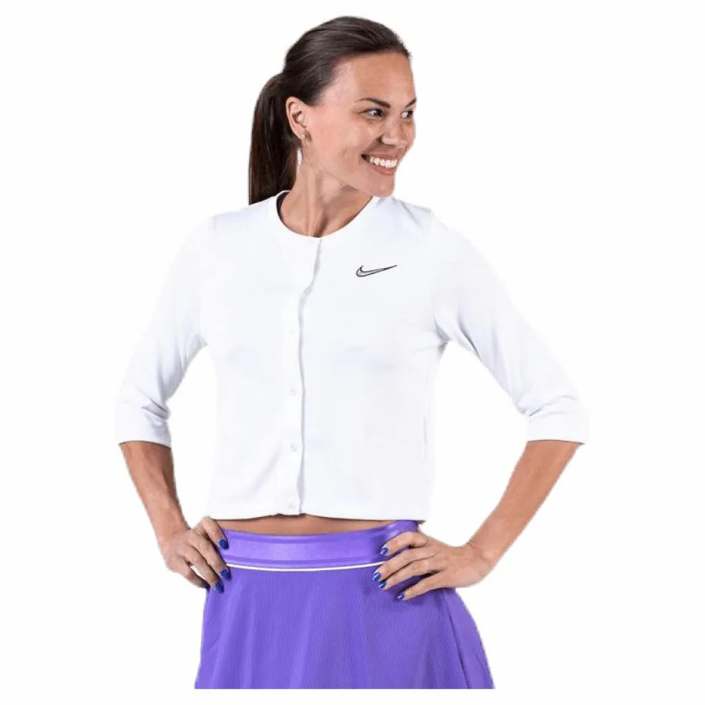 NikeCourt Cardigan är tillverkad av ett mjukt och svettavvisande material och kommer i en annorlunda design jämfört med klassiska tenniströjor tack vare ryggens unika mönster.