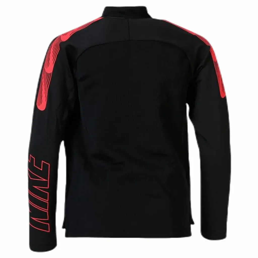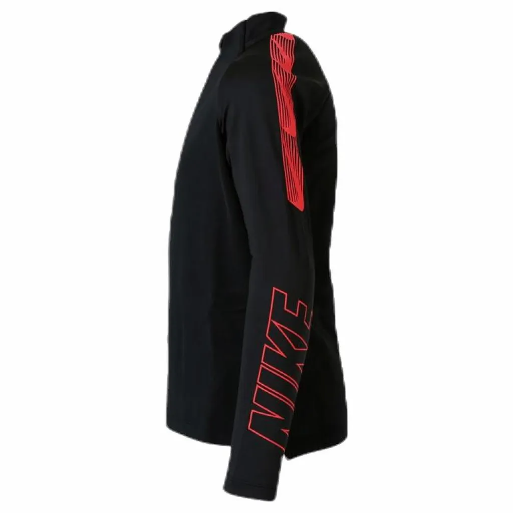 Dri-fit-teknik, 1/4 dragkedja på framsidan för justerbar ventilation, raglanärmar, osynliga tumhål, signaturpaneler på sidan för ventilation, lägre bakstycke, värmeöverförd Swoosh-logo, passform som passar för snabbt spel, nytt extra stretchigt material i axlar och ärmar för ökad rörelsefrihet, ribba nacke i kragen, exteriör tejp i nacken och reducerade axelsömmar för noll distraktion, ikoniska fartränder för fotboll på hd hyperblur silikontryck, använd vid uppvärmning och stoltsera med en djärv Swoosh-grafik på vänster arm för extra attityd