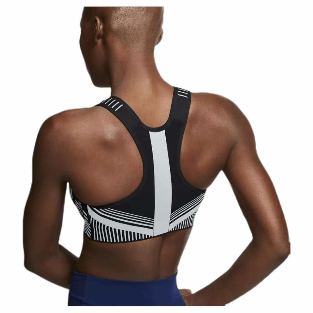 Nike FE/NOM Flyknit Women’s High Support Sports Bra är designad för att vara den lättaste bh:n för intensiva aktiviteter som löpning, basket och fotboll, och använder det designade stickade material som återfinns i Flyknit-skor. Den integrerar stretch och stöd där de behövs som mest i ett enkelt lager av mjukt tyg som anpassar sig till dina former.