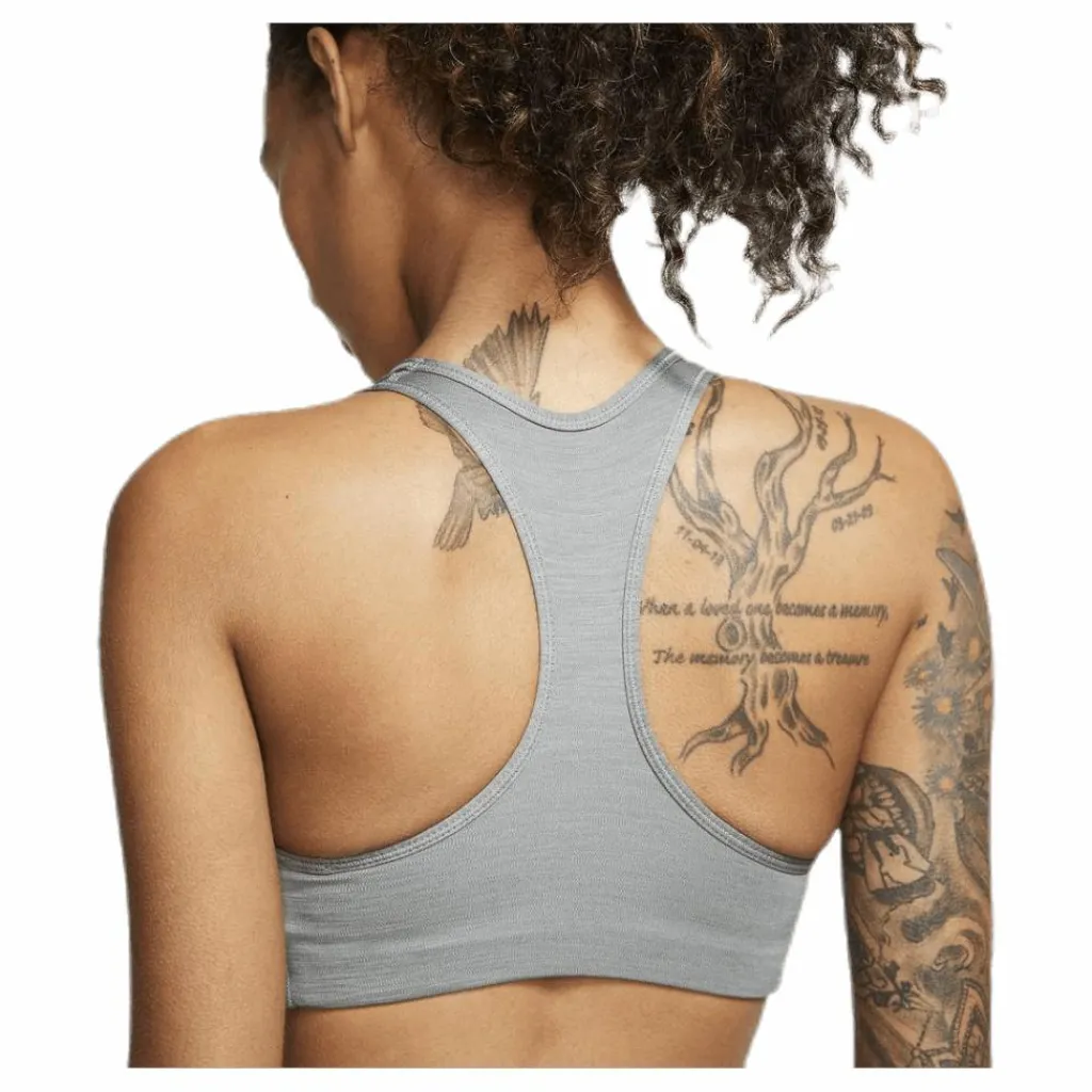 The non-padded Nike Sports Bra combines compressive fabric with sweat-wicking technology to help keep you dry and comfortable during medium-impact activities. A racerback design lets you move naturally when you’re getting after it.