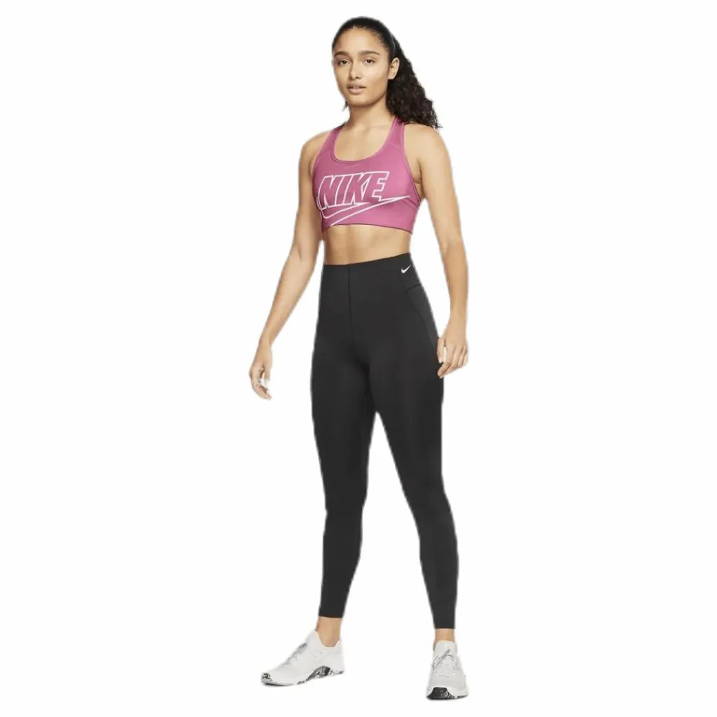 The non-padded Nike Sports Bra combines compressive fabric with sweat-wicking technology to help keep you dry and comfortable during medium-impact activities. A racerback design lets you move naturally when you’re getting after it.