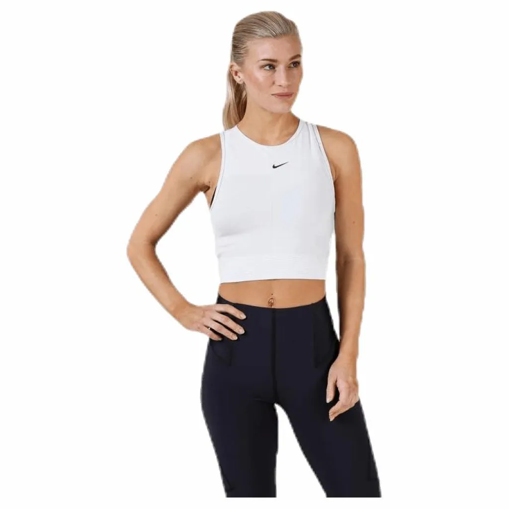 Nike Pro HyperCool Tank levererar svettavlägsnande funktion i en croppad siluett som är perfekt att bära som ett av flera lager. Den tighta passformen och den breda brottarryggen ger dig fri rörlighet under träningspasset, och den öppna ryggen levererar ventilationsförmåga.