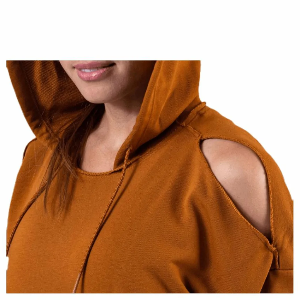 Ofållade kanter ger ett slitet, ledigt utseende. Ett lössittande plagg som är lätt att bära över dina andra träningsplagg.