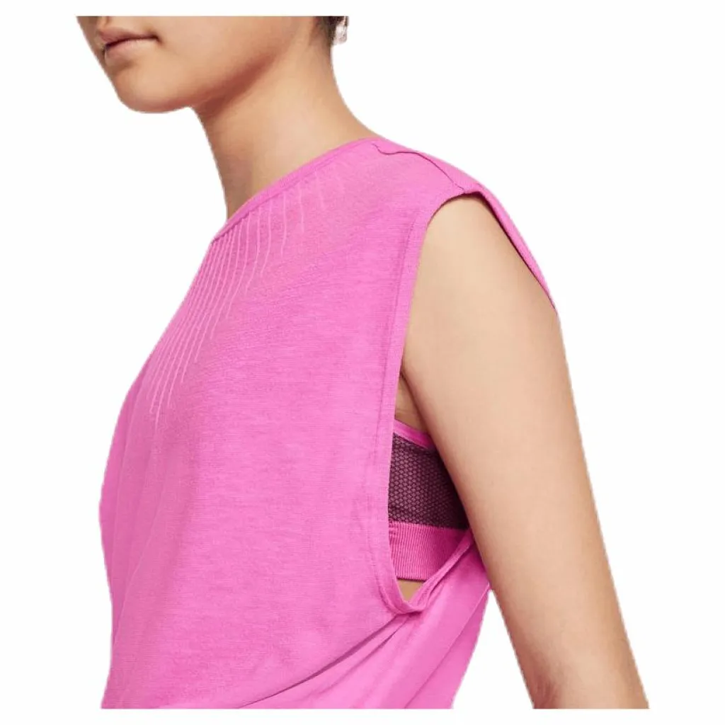 Wear the Nike Top forwards or backwards for a look that’s just right. Soft, stretchy fabric feels looser up top and fitted at the bottom. Grey sport top not included.