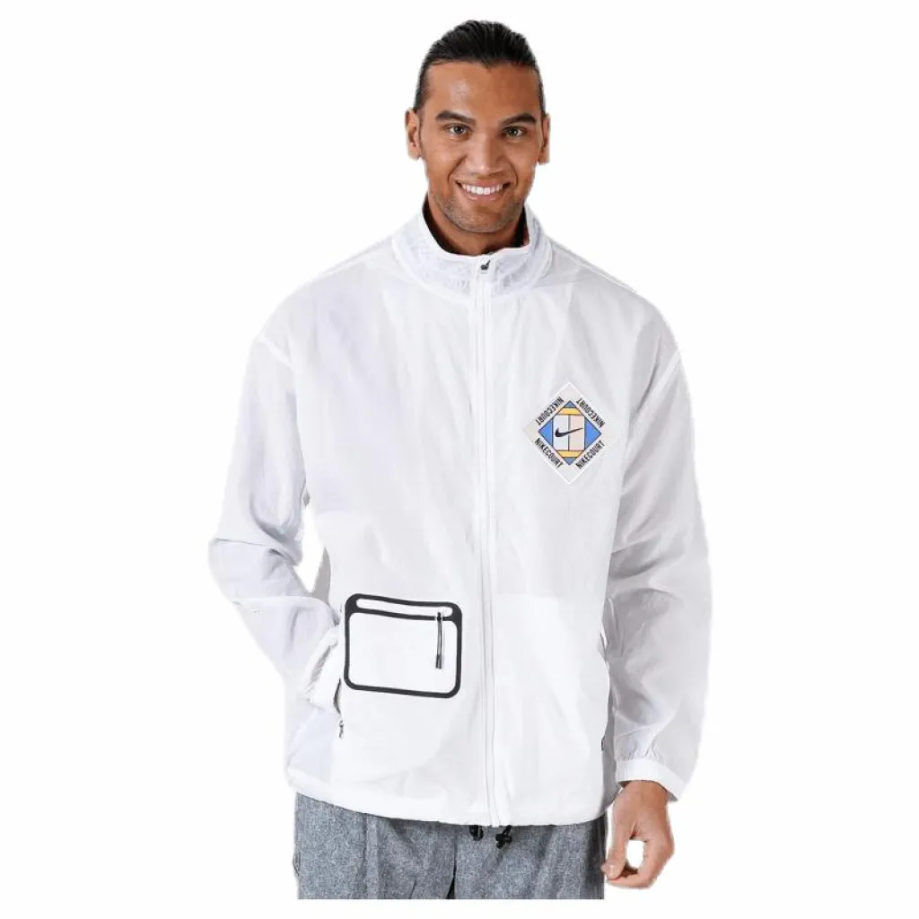 NikeCourt Jacket blandar looken från en klassisk stadium-jacka med 90-talets DNA. Det mesh-fodrade materialet har en skrynklig textur medan nacken med grafiskt mönster ger en färgklick när du bär jackan öppen.