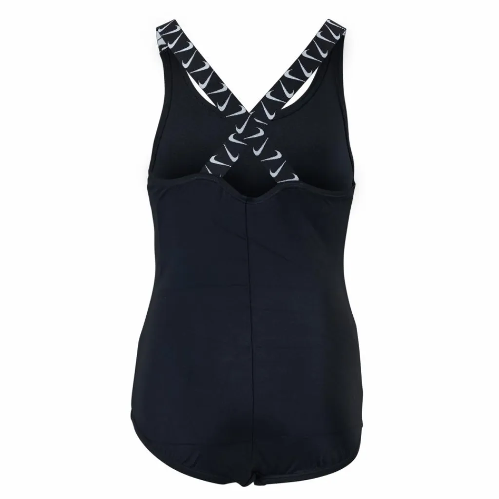 Lätt och bekväm, denna Nike Logo Tape Crossback-baddräkt har en djärv logotyp i Nike-stil på framsidan och en enkel racerback-tank.