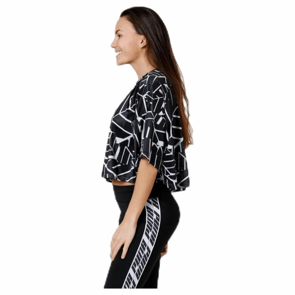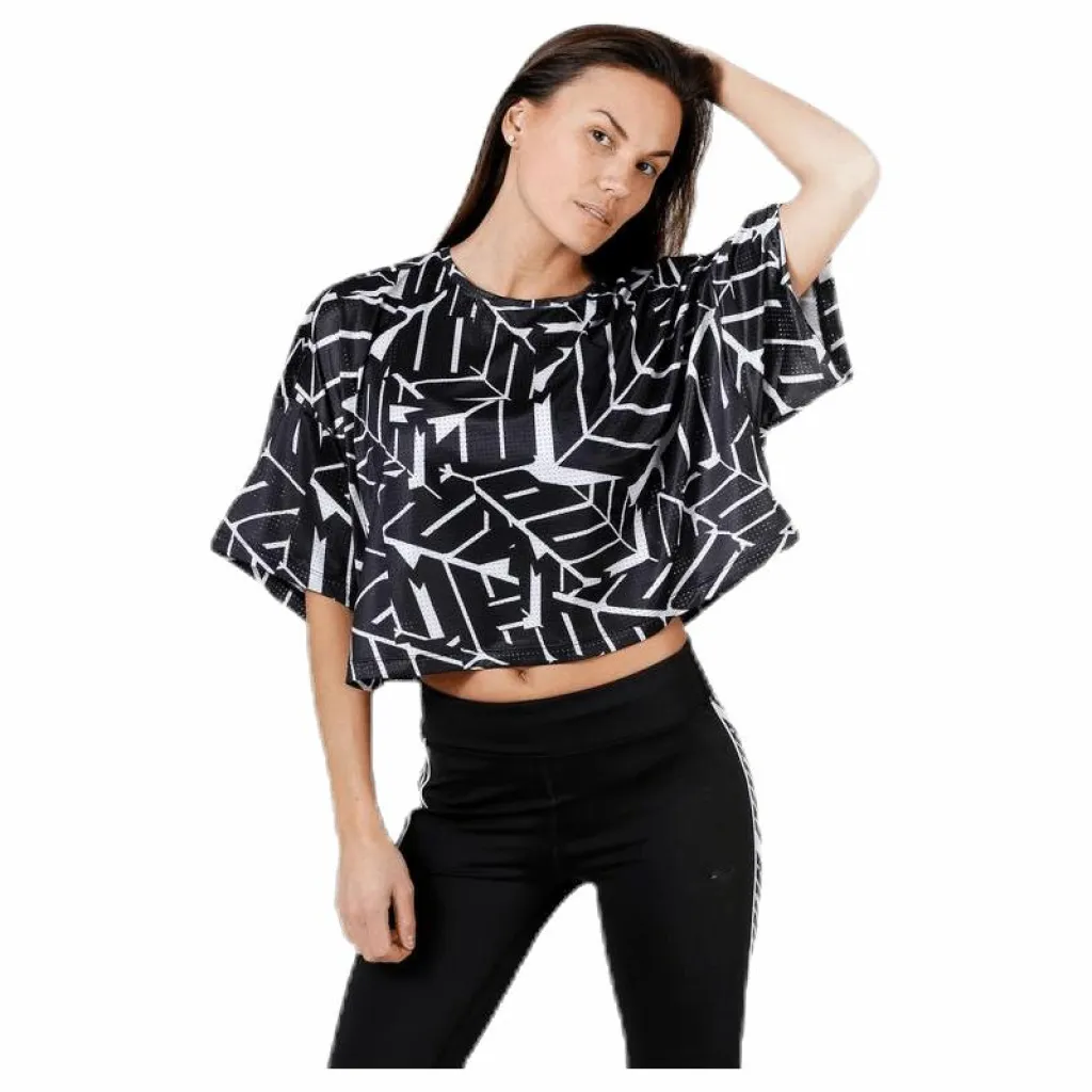 Funktionströja i högfunktionellt material. Damstorlekar. Material: 72% polyester/ 28% elastan. DryCELL-material innebär att svetten från kroppen transporteras ut från plagget till luften som gör att du kan känna dig torr och bekväm under din träning. Loose fit och har öppna mesh hål för både styling och ökad ventilation. Platta flatlocksömmar för att motverka skav.