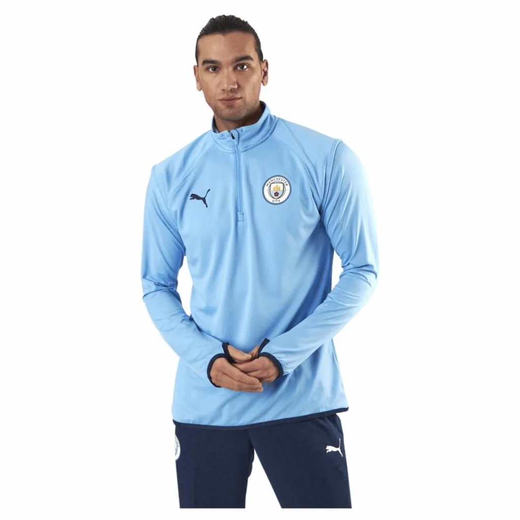 MCFC Warmup Midlayer är en funktionell stickning med Pumas ikoniska logotyp och randig design. Den här tröjan är lätt och perfekt för att lägga på varv på kalla morgnar på planen eller på matchen.