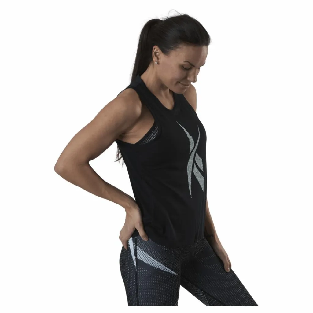 ReeBoks tank är perfekt för träning eller som vardagsskjorta. Tanken är gjord med en ärmlös, passande söm för en smickrande look och har en längre längd så att den inte åker upp.