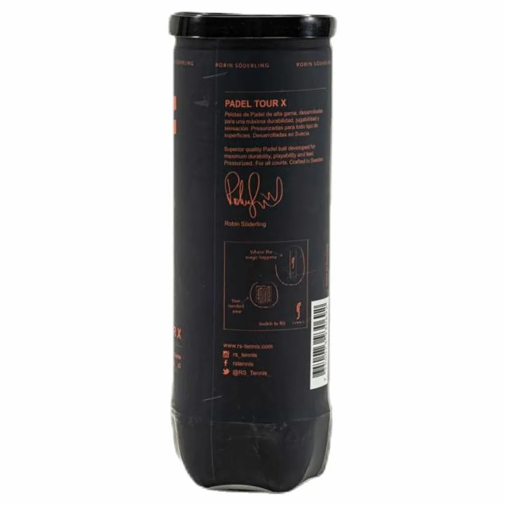 Robin Söderling och Sveriges bästa padelspelare Simon Vasquez teamade upp och har utvecklat en av de skönaste och mest hållbara bollarna på marknaden. RS Padel Tour X är en boll där fokus ligger på kontroll och spelkänsla samt att studsen är jämn och fin under flera timmar.