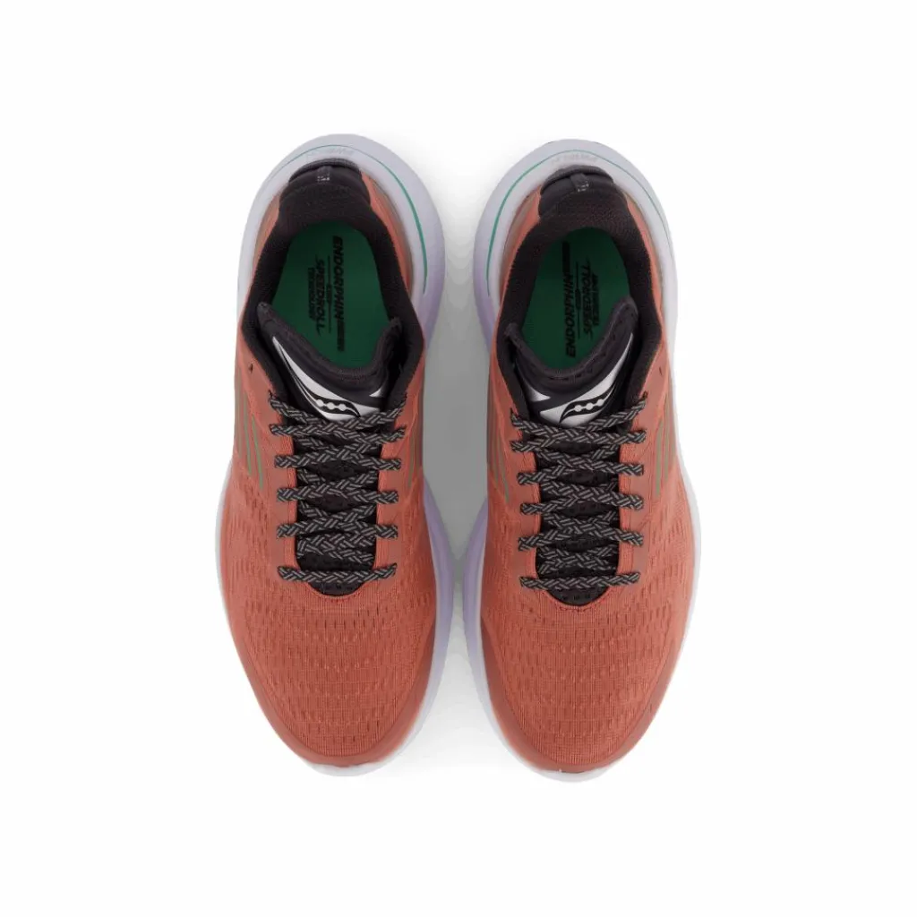 Endorphin Shift 3 är det perfekta valet för löparen som söker en mångsidig och inspirerande sko med en mix av låg vikt, högsta komfort och snabb löpglädje. Tack vare sin unika konstruktion passar Endorphin Shift 3 utmärkt både för snabb tempoträning och komfortabel distansträning. Den tredje versionen av modellen har en lättare ovandel samt ett bättre hälgrepp. Den nya ovandelen kombinerad med en uppdaterad extern TPU-hälkappa gör att Endorphin Shift blir lättare än någonsin. Den höga mellansulan består av stötdämpande PWRRUN, som tillsammans med toppsulan i PWRRUN+ ger en otroligt skonsam och energiåtergivande stötdämpning. 4 mm dropp kombinerat med den höga, styva, rundade mellansulan och den nya Centerline teknologin skapar en energimaximerade språngbräda för den framåtdrivande kraften i SPEEDROLL-teknologin. Den nya Centerline teknologin centrerar foten vid insättningen och styr den framåt under stegets avveckling. Denna framåtdrivande kraft gör att löpningen känns lättare och snabbare, då höften hamnar i ett högre läge och kroppens hållning i en mer framåtdrivande position. På så sätt kommer löparen snabbare till stegaveckling, och rullar igenom löpsteget med lägre energiförbrukning och belastning kring knän, fötter, hälsena och vader. Den unika FORMFIT-passformen skapar en optimal och individuellt omslutande passform runtom hela foten. Toppen av mellansulan är anatomiskt fotformad för att vagga in foten och ge bättre stöd kring häl och hålfot. Ovanifrån kramas foten om på ett bekvämt och stabilt sätt med hjälp av en formbar, sömlös och väl ventilerande mesh, som kombineras med stabiliserande 3D-struktur runtom mellanfoten samt en extern TPU-hälkappa. Ovandelen består dessutom av återvunnet material, för att reducera vårt ekologiska fotavtryck. Yttersulan i slitstarkt XT900-gummi är optimerad för låg vikt, snabb fart och bra grepp.