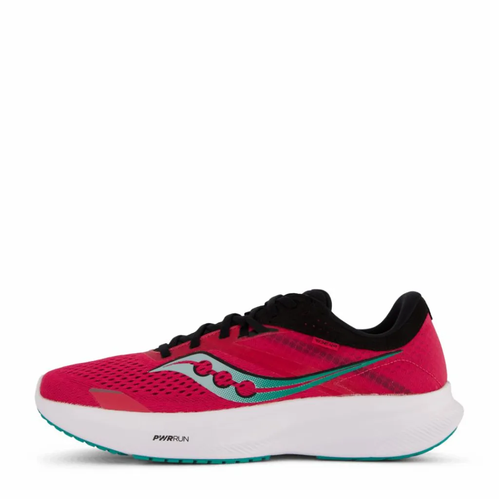 Ride 16 är den självklara favoriten för den neutrala löparen som söker en lätt och följsam mängdträningssko med maximal löpkänsla och komfort. Mellansulan tillverkas i Sauconys unika PWrRUN Foam som i kombination med den nya innersulan i bästa PWRRUN+ ger en fantastisk fin komfort. Toppen av mellansulan är anatomiskt fotformad för att vagga in foten och ge bättre stöd kring häl och hålfot. Ovanifrån kramas foten om på ett bekvämt och stabilt sätt med hjälp av en uppdragen sarg från mellansulan, och en formbar, sömlös och väl ventilerande mesh, vilket kombineras med stabiliserande 3D-struktur runtom mellanfoten. Ovandelen består dessutom av återvunnet material, för att reducera vårt ekologiska fotavtryck. Yttersulan i slitstarkt XT900-gummi är optimerad för låg vikt, stabilitet och bra grepp.