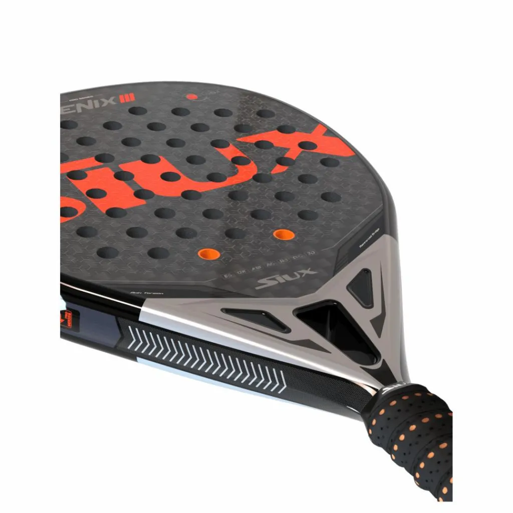 Siux Fenix Javi Ruiz padelracket har också ett antal andra designelement som gör den till ett utmärkt val för seriösa spelare. Racketen har ett rombformat huvud, vilket ger en större sweet spot och mer kraft vid slag utanför mitten. Den har också en grov yta i ansiktet, vilket hjälper till att generera mer spinn på bollen.