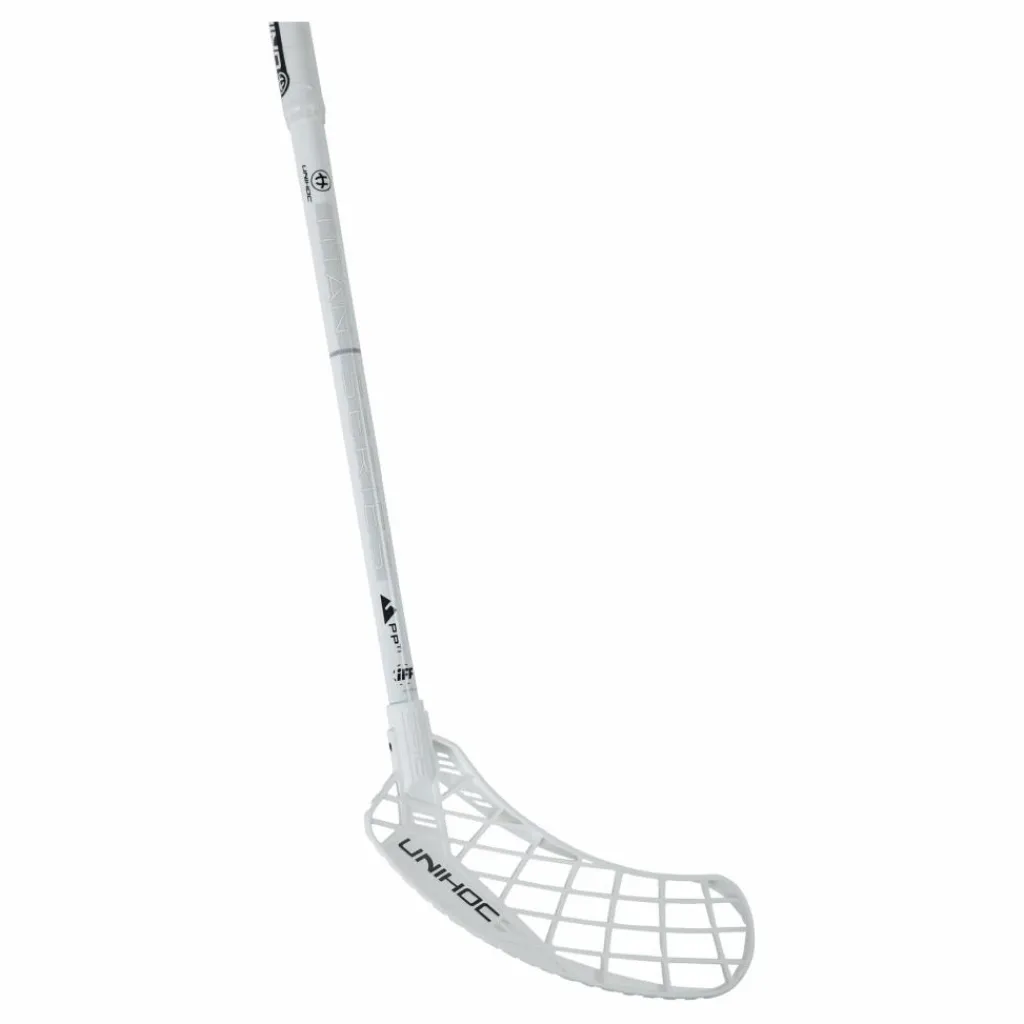 En komposit innebandyklubba med ett skaft av komposit och ett plastblad. Stickan väger 480 gram.