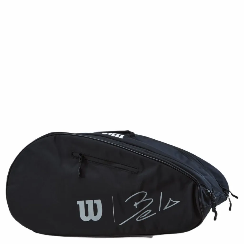 Bär väskan till en padellegend med Bela Super Tour, en väska designad för att ha klassens bästa funktionalitet och utseende. Den här väskan är försedd med Wilson x Bela logotypen mot en ljus infraröd polyester med PU-beläggning för extra hållbarhet och har gott om plats för flera padelrack och extra padelutrustning eller accesssoarer. Med toppfunktioner som inkluderar Thermoguard foder för skydd mot extrem värme, ett fodral för bärbara datorer eller surfplattor och en fleecefodrad tillbehörsficka för mindre värdesaker, är det inte konstigt att detta är valet för en padelfantast.