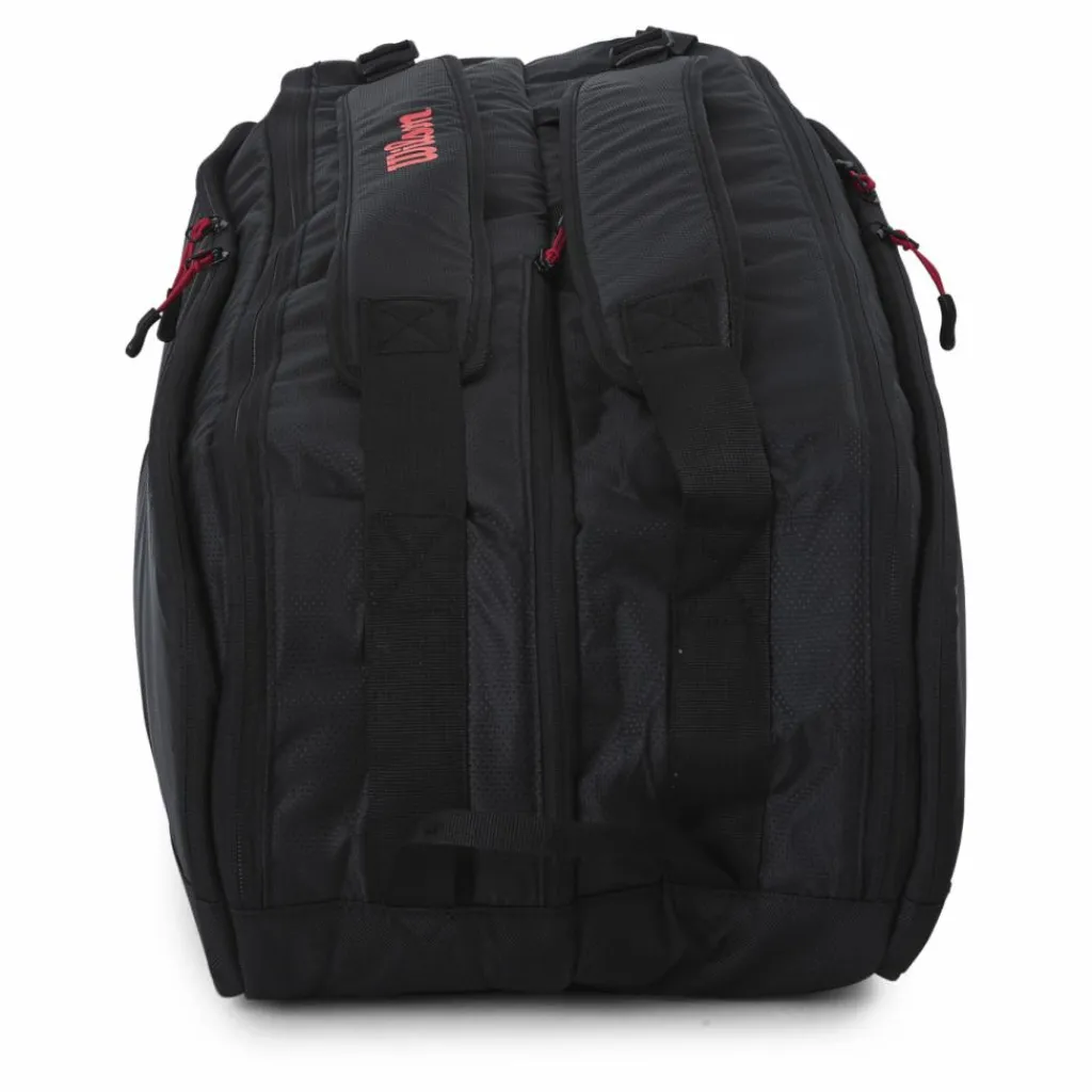 Wilsons Tour Collection omfattar skarp design, effektiv funktionalitet och långvarig hållbarhet för tennisspelare över hela världen. Utrustad med två huvudfack som rymmer upp till 12 racketar, erbjuder den här väskan ett dubbelt bärsystem och extra utrymme för skor eller mindre personliga varor i en ficka med dragkedja som kantas längs mittsömmen.