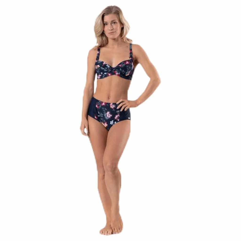 Blommig bikiniöverdel med bygel på fin navy botten. Ofyllda kupor men med support i sidorna för extra bra stöd. En snygg och enkel bikini-BH som verkligen sitter som en vanlig BH.