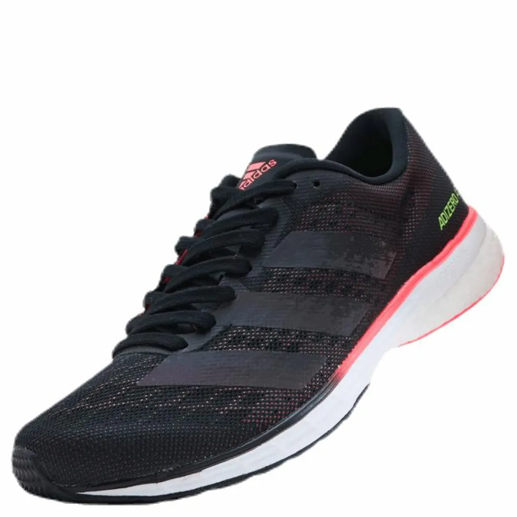 Vem har sagt att löpningen måste vara lång och gå i sakta mak? Det är dags att ändra på narrativet med hjälp av dessa lätta löparskor skapade för ett snabbare tempo. Skorna Adizero Adios 5 är skapade för komfort genom löpningen, med en fjädrande mellansula och superlätt ovandel för att hålla ett jämnt tempo även när du börjar bli trött. Rosa detaljer representerar sammanhållning och en global uppmaning till förändring. Vikt: 224 g (storlek 42 2/3). Mellansulans dropp: 9,5 mm (häl: 21,5 mm, framfot: 12 mm). Yttersula i gummit Continental™. Knyts med snören. Meshovandel. Lightstrike-dämpning för snabb och smidig känsla. Lätta löparskor. Responsiv mellansula med Boost.