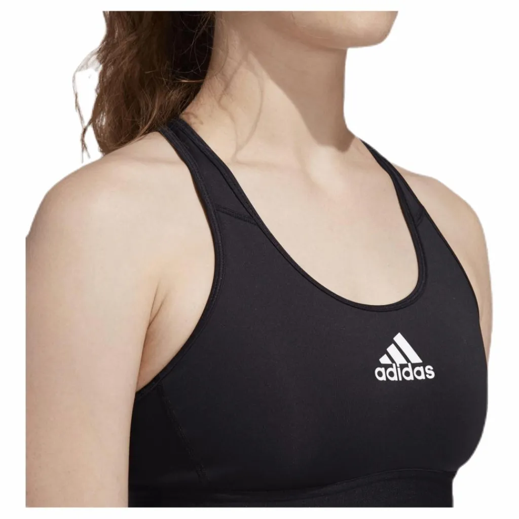 En bh, valfri träning. Vare sig du cyklar eller cirkeltränar erbjuder denna sport-bh från adidas mer stöd och färre störningsmoment. Känn dig säker med fixerad kompressionspassform. Det stretchiga och fuktabsorberande materialet gör att du känner dig torr fast du får upp pulsen. Följsam passform med Alphaskin. Brottarrygg med stabiliserande remmar fram. Denna sport-bh är gjord i material med återvunnen polyester för att spara på naturens resurser och minska utsläppen. Rund hals. Interlock i 70 % återvunnen polyester, 19 % polyester, 11 % elastan. Foder i kraftig mesh i dubbla lager. Bh utan knäppning med medelstort stöd. Fuktabsorberande AEROREADY.