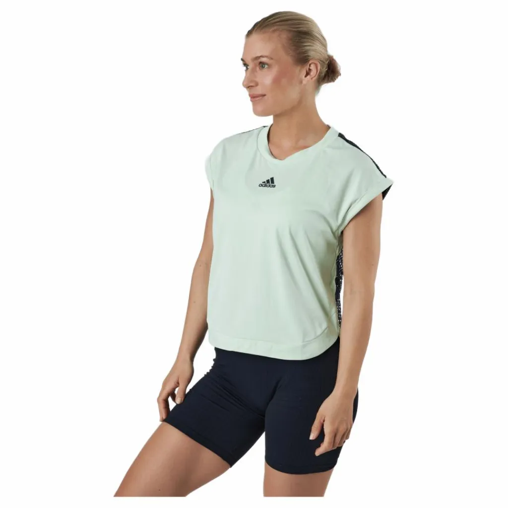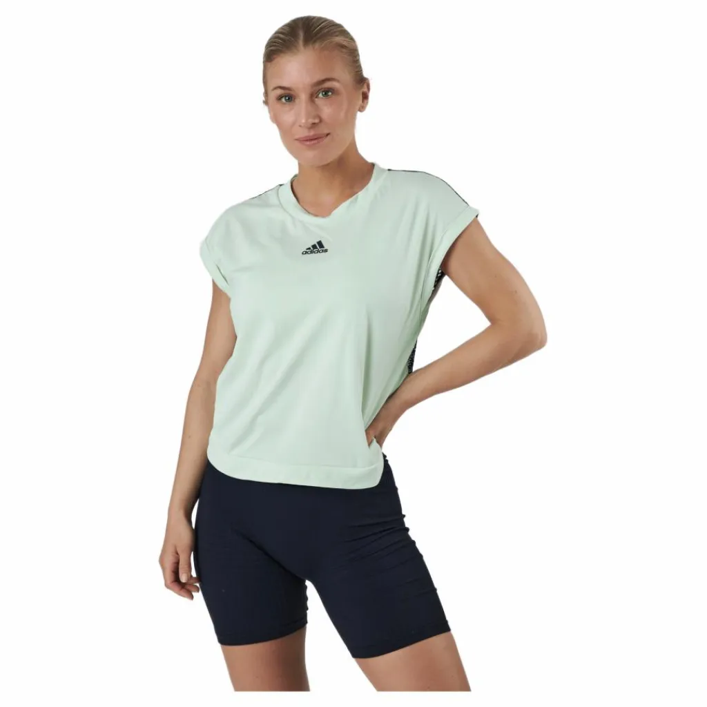 Stilmässigt inspirerad av gatorna i NYC. Den här fuktavledande T-shirten är gjord i en snygg look inspirerad av den blomstrande tennisscenen i the Big Apple. Den är tillverkad i ett mjukt material med tight, avkortad passform och har en inbyggd, vadderad bh. Den bakre panelen i mesh gör ett statement när du utklassar motståndarna.Cool på bananPanelen i hålig mesh på ryggen ger ventilerad komfort och en utmärkande lookHåll dig torrClimalite leder bort svetten och håller dig torr i alla lägenSynts på tennisplanenBars av Angelique Kerber i Nordamerikas mest prestigefyllda turnering