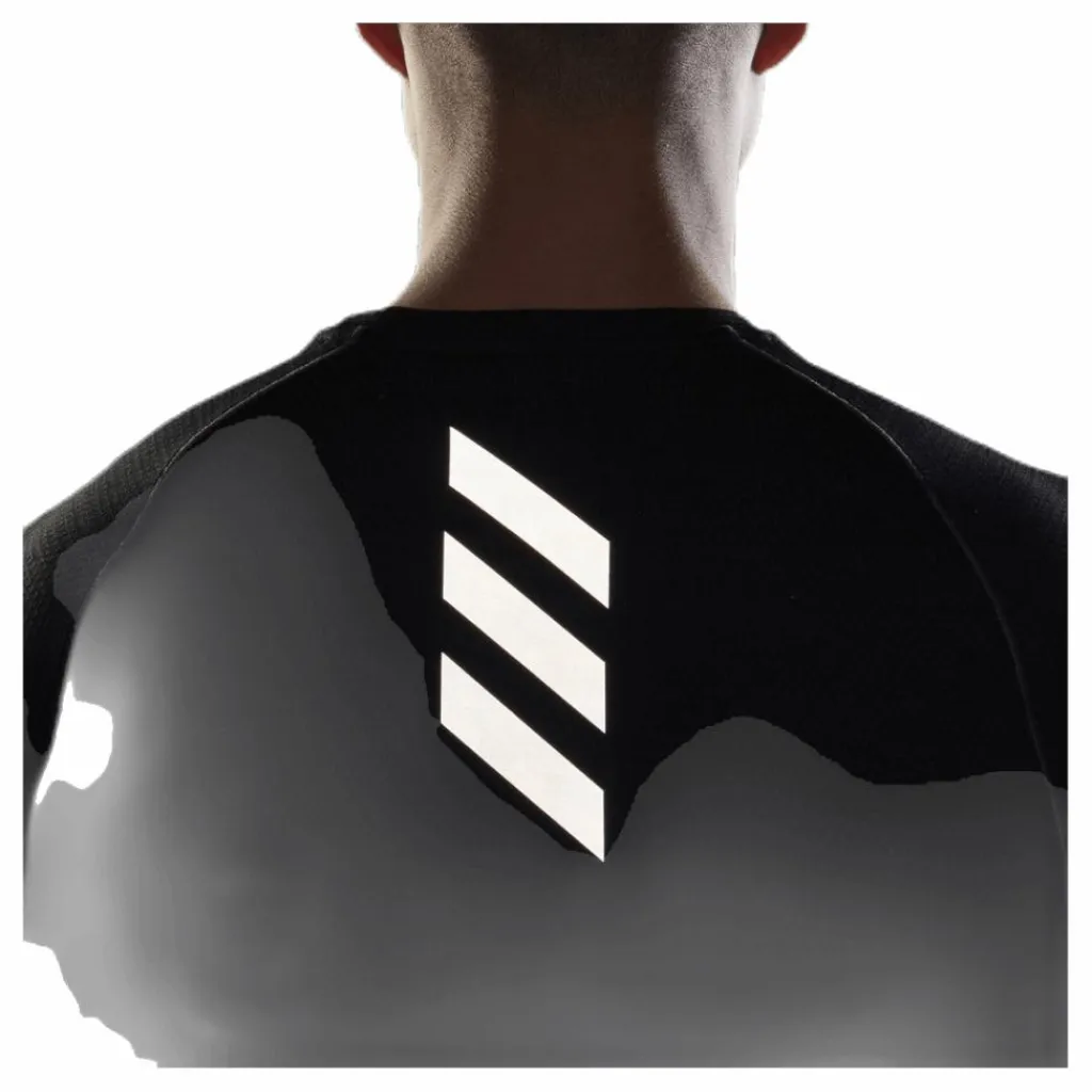 Varje gång du drar på dig denna adidas Runner Tee och ger dig ut signalerar du till både dig själv om omgivningen att du är hängiven planetens bästa. Den mjuka och bekväma T-shirten är gjord i återvunna material, en del av adidas arbete för att skapa produkter med mindre miljöpåverkan. Detta är bara ett första steg mot en mer hållbar framtid. Men det är så resan börjar. Denna produkt är gjord med Primegreen, en serie funktionsinriktade återvunna material utan nyproducerad polyester.. Rund hals. 100 % återvunnen polyester. Mjuka och ventilerande. Reflekterande löpartröja. .