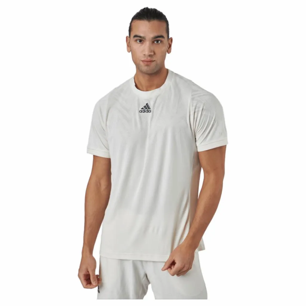 adidas tennis FREELIFT t-shirt i en krispig vit färg med en subtil randig detalj på framsidan. Denna adidas tennis FREELIFT t-shirt är perfekt för alla årstider och kommer att se bra ut med dina favoritjeans eller shorts. Du kan också bära den som din vanliga t-shirt på helgerna eller till jobbet.