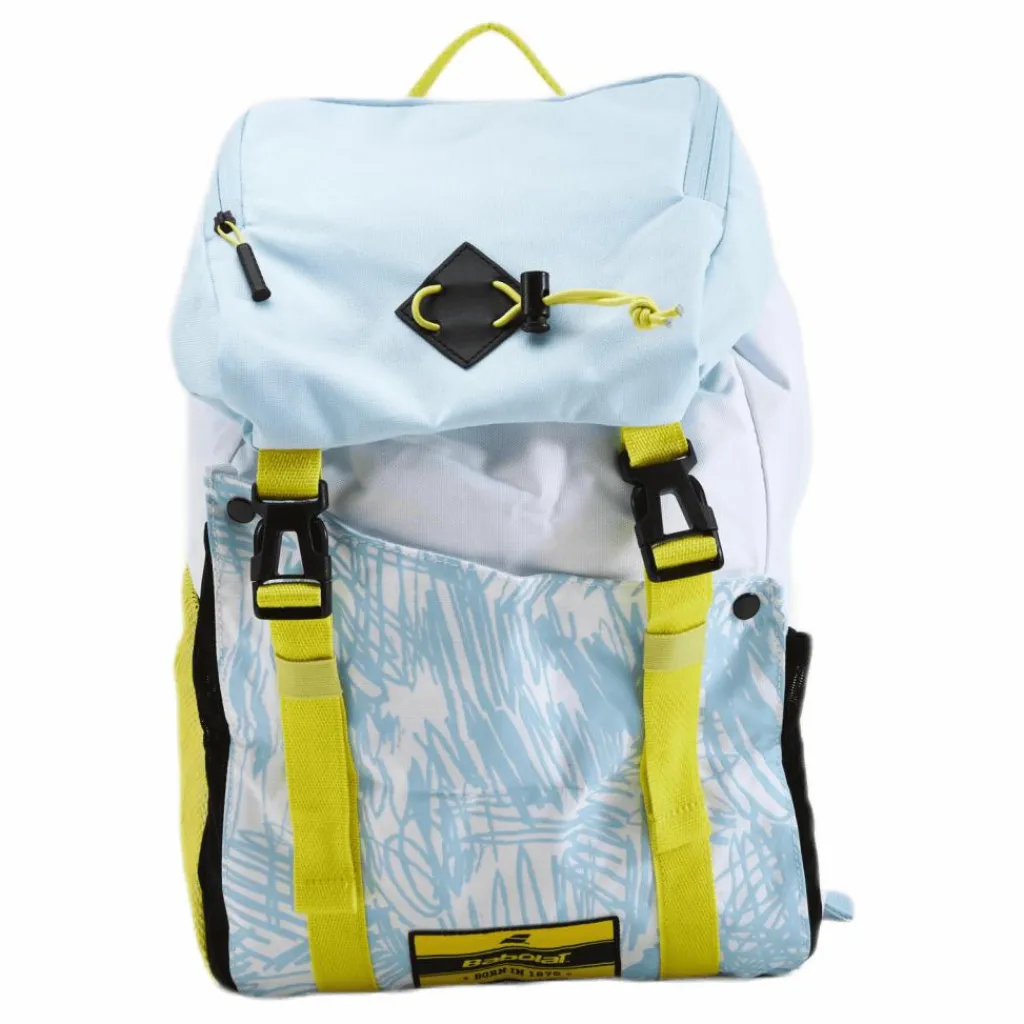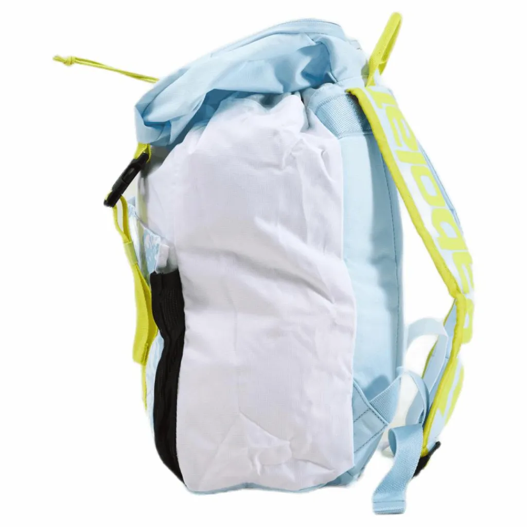 Denna väska är designad för att vara perfekt som en vardagsväska eller ett alternativ till banan. Gå in i väskan från den lätta, stora öppningen för packning på toppen som är säkrad med 2 remmar och en cinch lina. I huvudfacket hittar du en plats för din bärbara dator och 2 platta öppna fickor som kan hålla upp till 2 racketar säkrade med 2 remmar och det elastiska bandet. En tillbehörsficka är placerad upptill för mindre föremål och två sidfickor för att hålla en vattenflaska eller energibar.