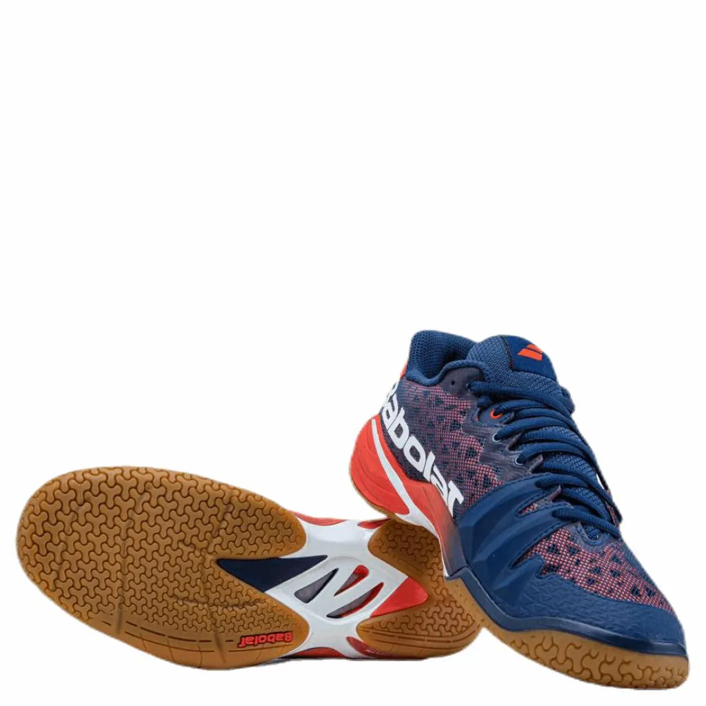 Populär indoorsko som fungerar utmärkt till dina inomhussporter såsom badminton, innebandy, gymmet och mer. Den är uppbyggd av alla de viktigaste kraven som ställs på en inomhussko; bra grepp, lätt vikt samt god andningsförmåga. Undersulan är utvecklad och tillverkad av Babolats samarbetspartner Michelin. 3D-formade dubbar i olika storlekar ger en optimal sula, större dubbar bidrar med hållbarhet och extra bra grepp medan de mindre dubbarna ökar friktionen. Resultatet blir explosivare startrörelser och snabbare stopp. Ovansidan är förstärkt med Soft Shield-material på strategiska punkter som ofta utsätts för extra slitage. Dina hälar skyddas mot hårda stötar tack vare dämpningssystemet KPRS-X som på ett föredömligt sätt dämpar och ökar komforten i stegen.