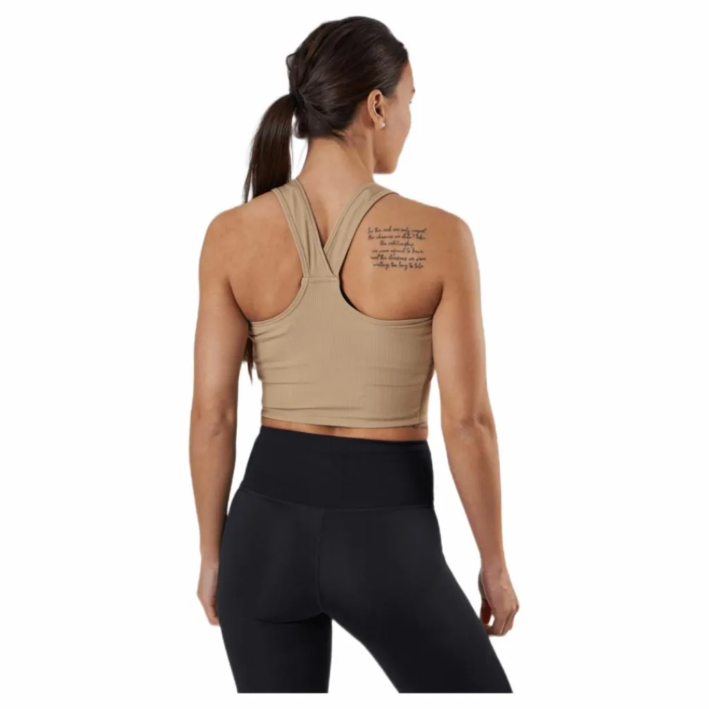 Få en natts sömn och ett träningspass med detta ribbade linne. Den ömtåliga ribbningen på framsidan av tanken känns bra mot din hud när du svettas genom denna topps fukttransporterande funktion. Den är gjord för att andas och stretchig, vilket betyder att den har en bekväm passform.
