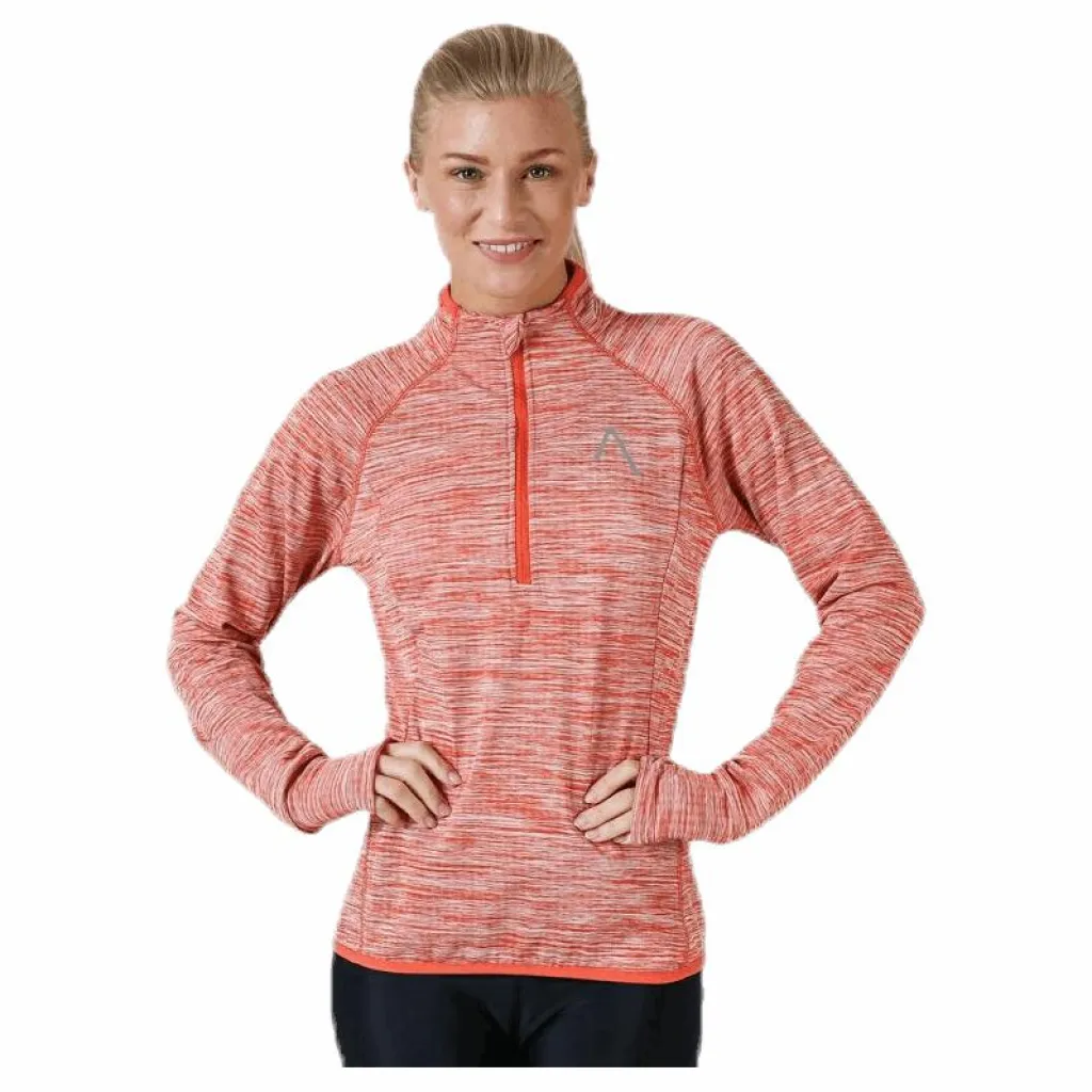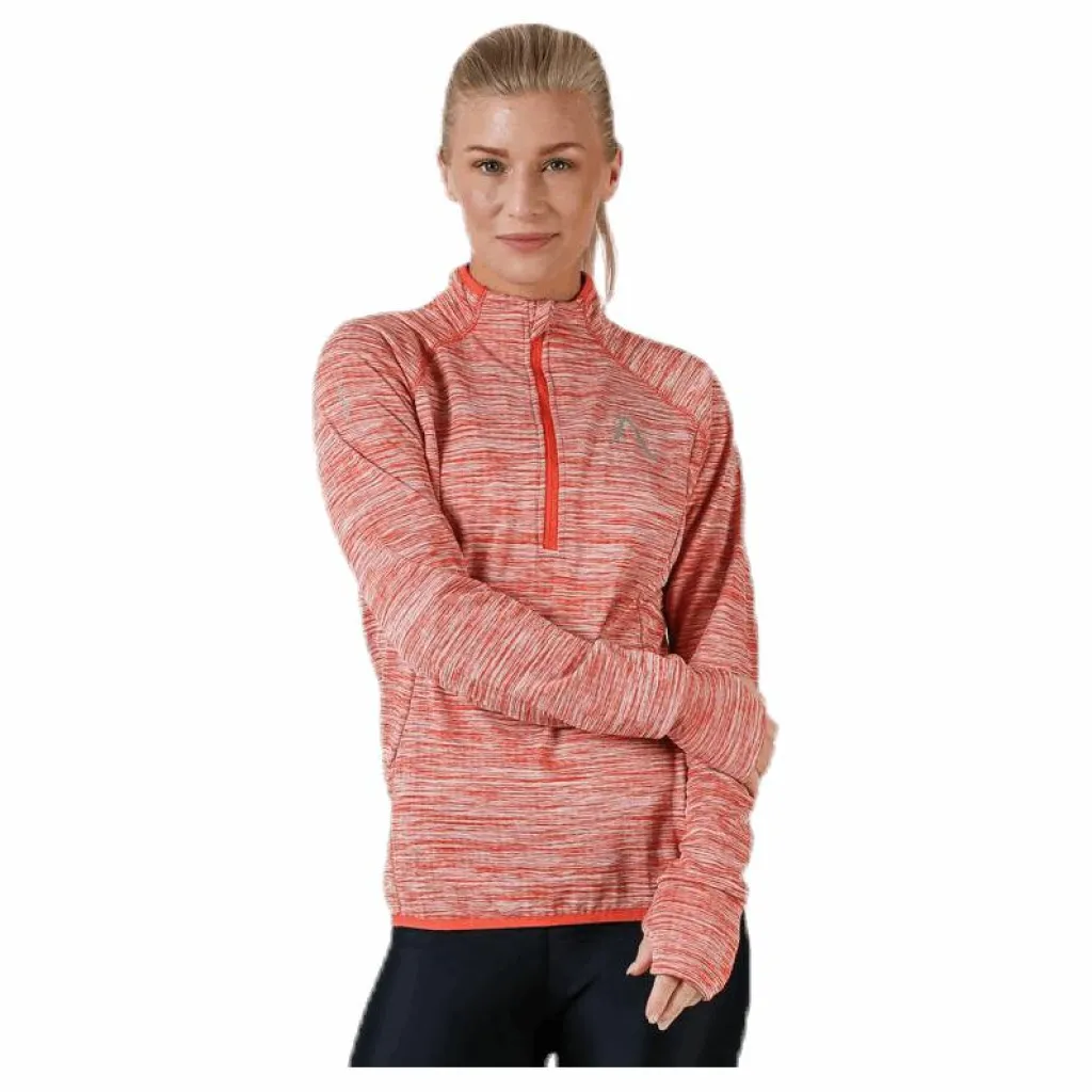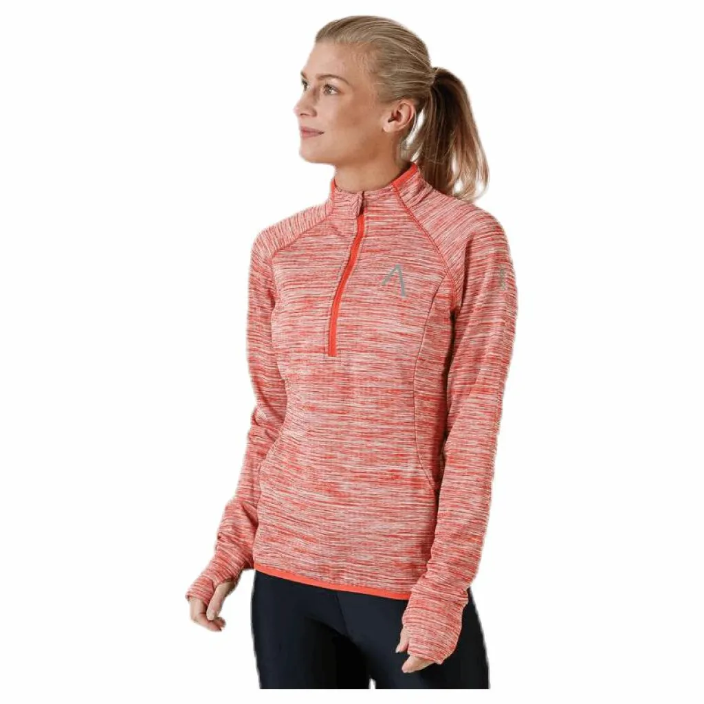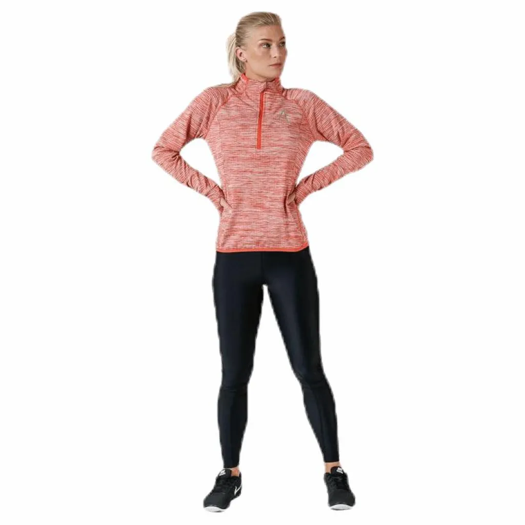 Långärmad half zip för svalare dagar. Tillverkad i mjukt och skönt funktionsmaterial som har en strukturerad och värmande insida. Halv dragkedja för effektiv värmereglering. Hög krage som stänger ute kyla och blåst. Dold ficka i sidsömmen som rymmer en telefon. Tumhål i ärmslut. Perfekt att bära över en T-shirt för att hålla dig varm och behaglig under löprundan. Material: 93% polyester, 7% elastan
